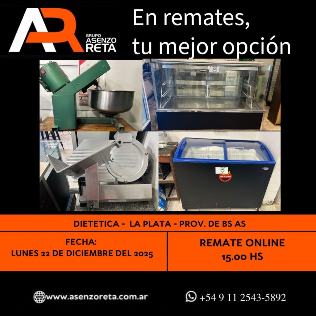 EXCELENTE REMATE SIN BASE AL MEJOR POSTOR Remate Importante Bar Restaurante – Chacarita – CABA – 29/12/25 ¿Buscas equipamiento para tu negocio? ¡Esta es tu Oportunidad! Más Información Consultanos Importante Bar Restaurante – Chacarita – CABA 29/12/25 EXCELENTE REMATE SIN BASE AL MEJOR POSTOR!! LUNES 229DE DICIEMBRE DEL 2025. INICIO DEL REMATE 15:00 HS PODES DESCARGARTE […]