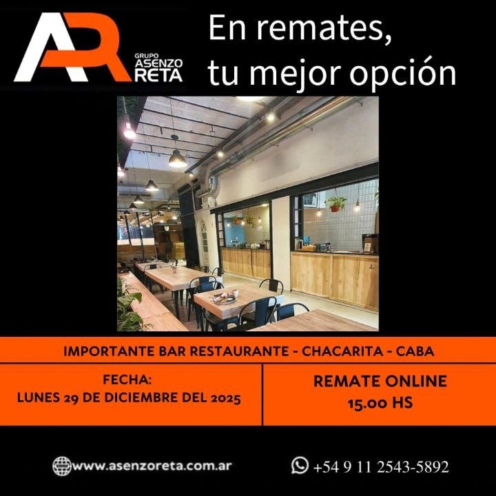 Remate Importante Bar Restaurante – Chacarita – CABA – 29/12/25