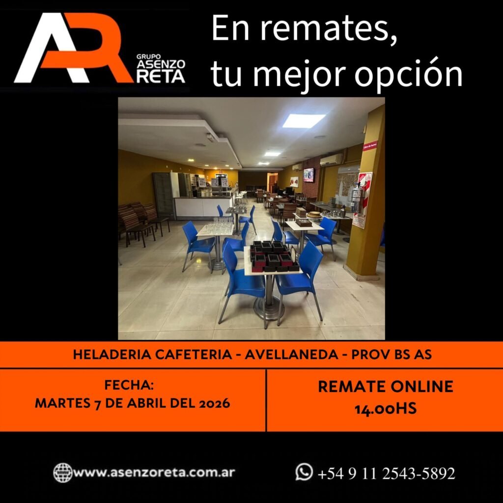 Remate Heladeria Cafeteria – Dos Etapas – Avellaneda – Prov Bs As – 2da Etapa Miércoles 08/04/26