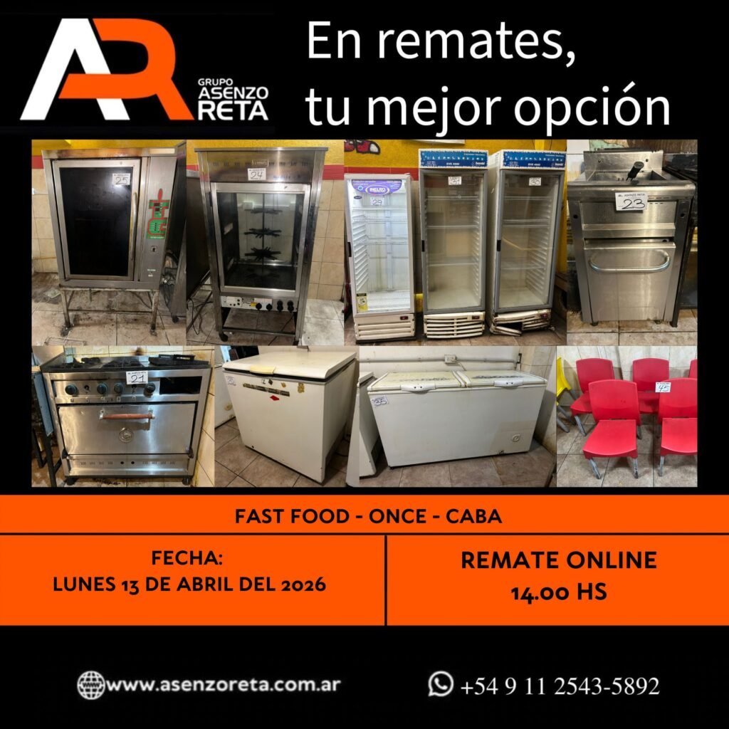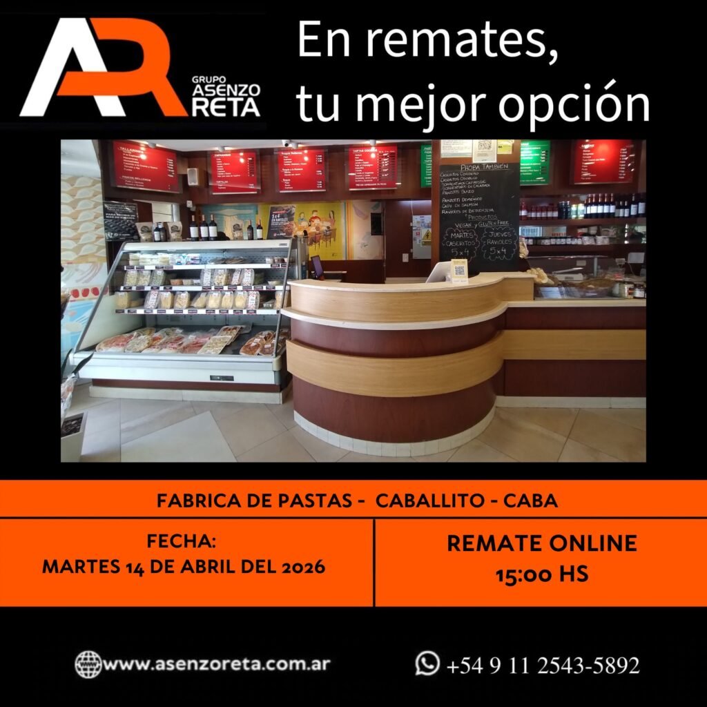 EXCELENTE REMATE SIN BASE AL MEJOR POSTOR ¿Buscas equipamiento para tu negocio? ¡Esta es tu Oportunidad! Más Información Consultanos Remate Heladeria Cafeteria – Dos Etapas – Avellaneda – Prov Bs As – 2da Etapa 08/04/26 Heladeria Cafeteria – Dos Etapas – Avellaneda – Prov Bs As – 2da Etapa 08/04/26 EXCELENTE REMATE SIN BASE AL […]