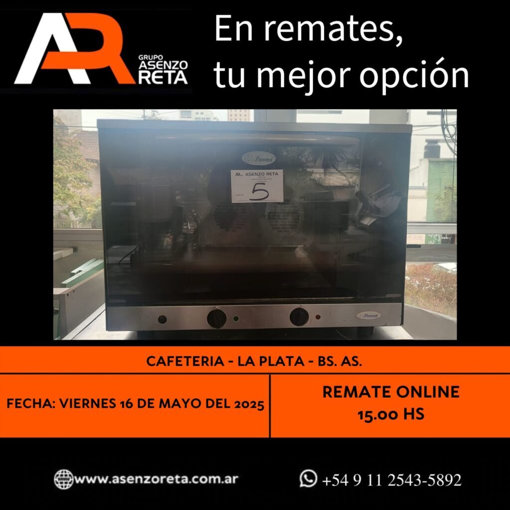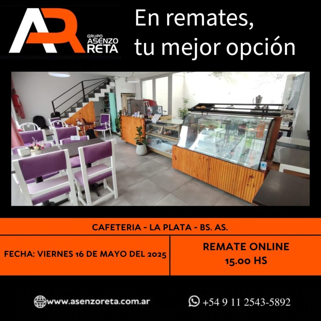 573° CAFETERIA – LA PLATA – BS. AS. – VIERNES 16 DE MAYO DEL 2025. INICIO DEL REMATE 15.00 HS PODES DESCARGARTE LOS PDF O CONSULTARNOS POR WHATSAPP PARA MAS INFORMACION! RECUERDE SOLICITAR SU LINEA DE CREDITO PARA PARTICIPAR DEL REMATE