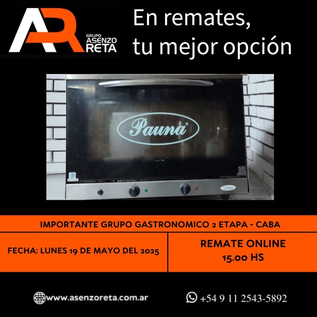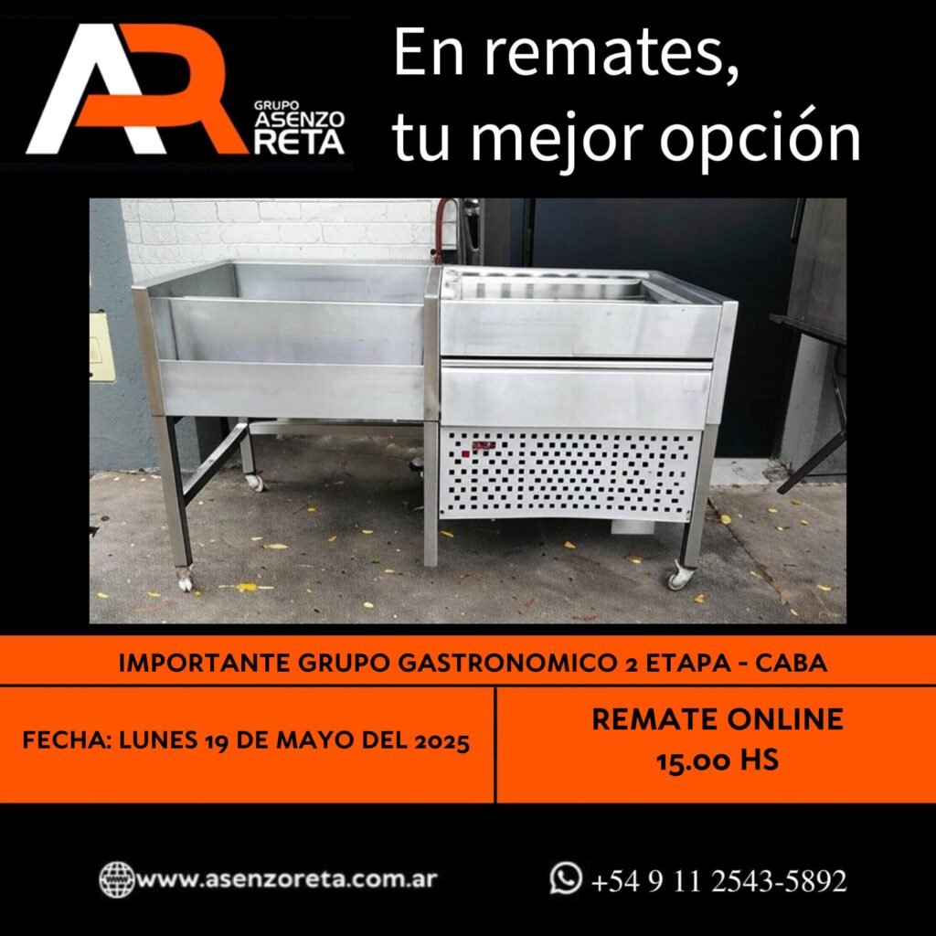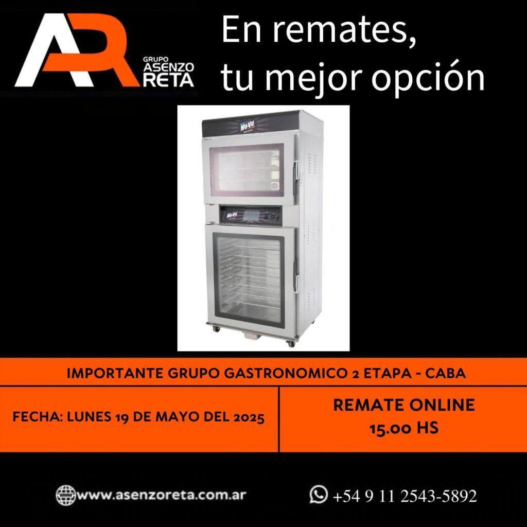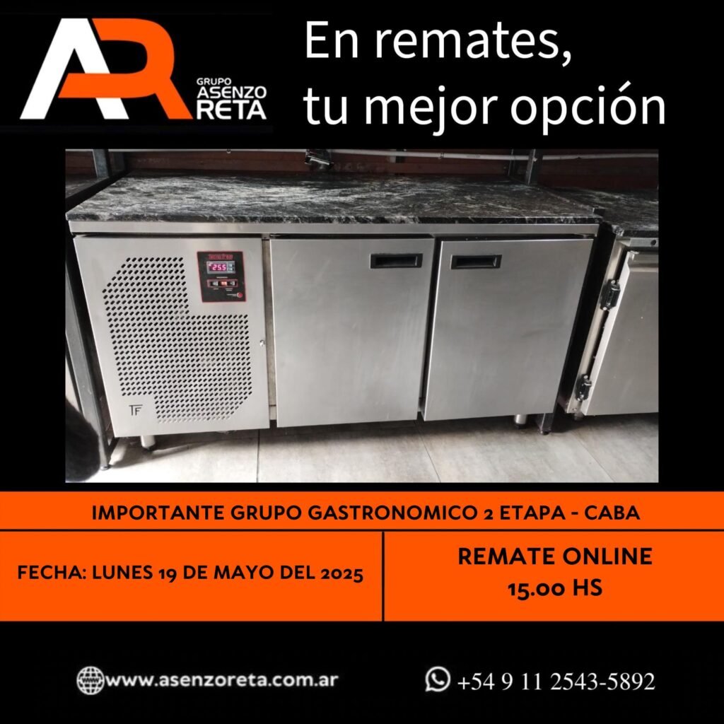 573° IMPORTANTE GRUPO GASTRONOMICO 2DA ETAPA – CABA – LUNES 19 DE MAYO DEL 2025. INICIO DEL REMATE 15.00 HS PODES DESCARGARTE LOS PDF O CONSULTARNOS POR WHATSAPP PARA MAS INFORMACION! RECUERDE SOLICITAR SU LINEA DE CREDITO PARA PARTICIPAR DEL REMATE