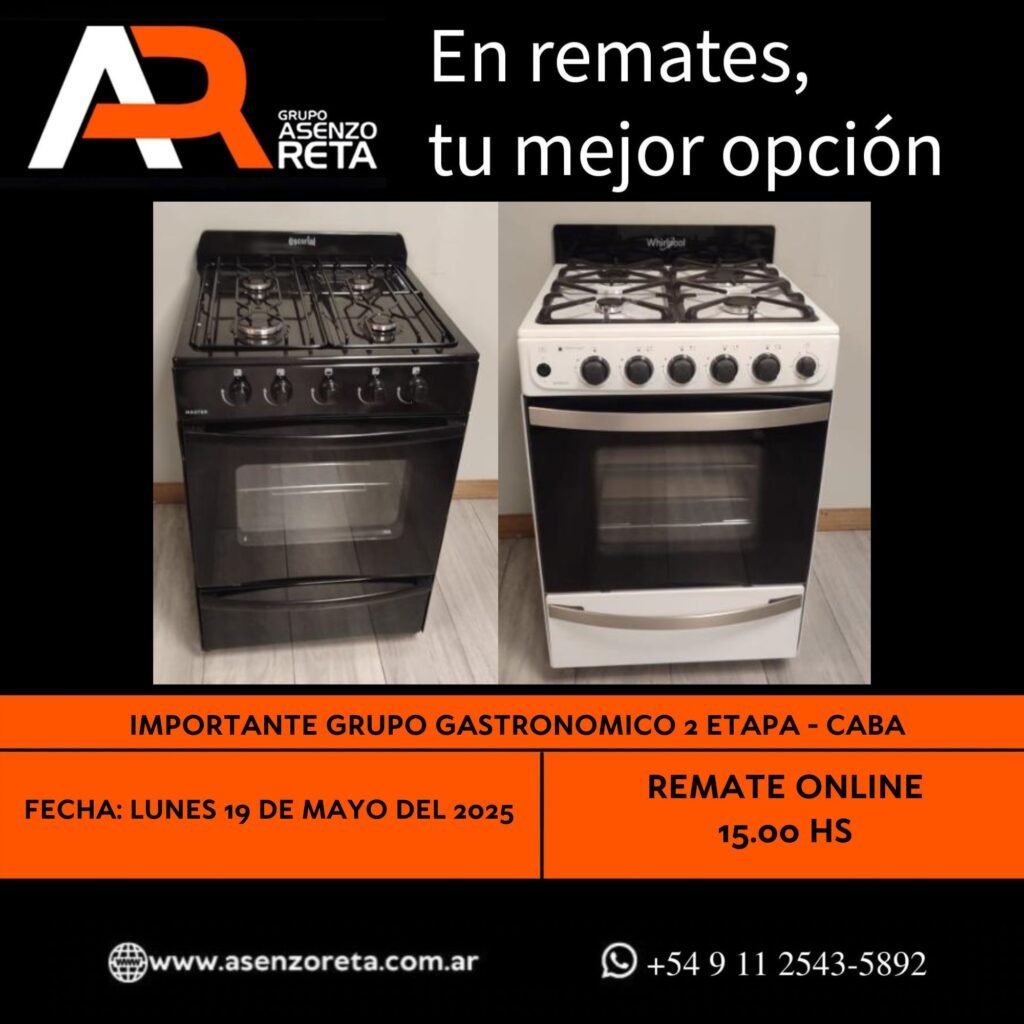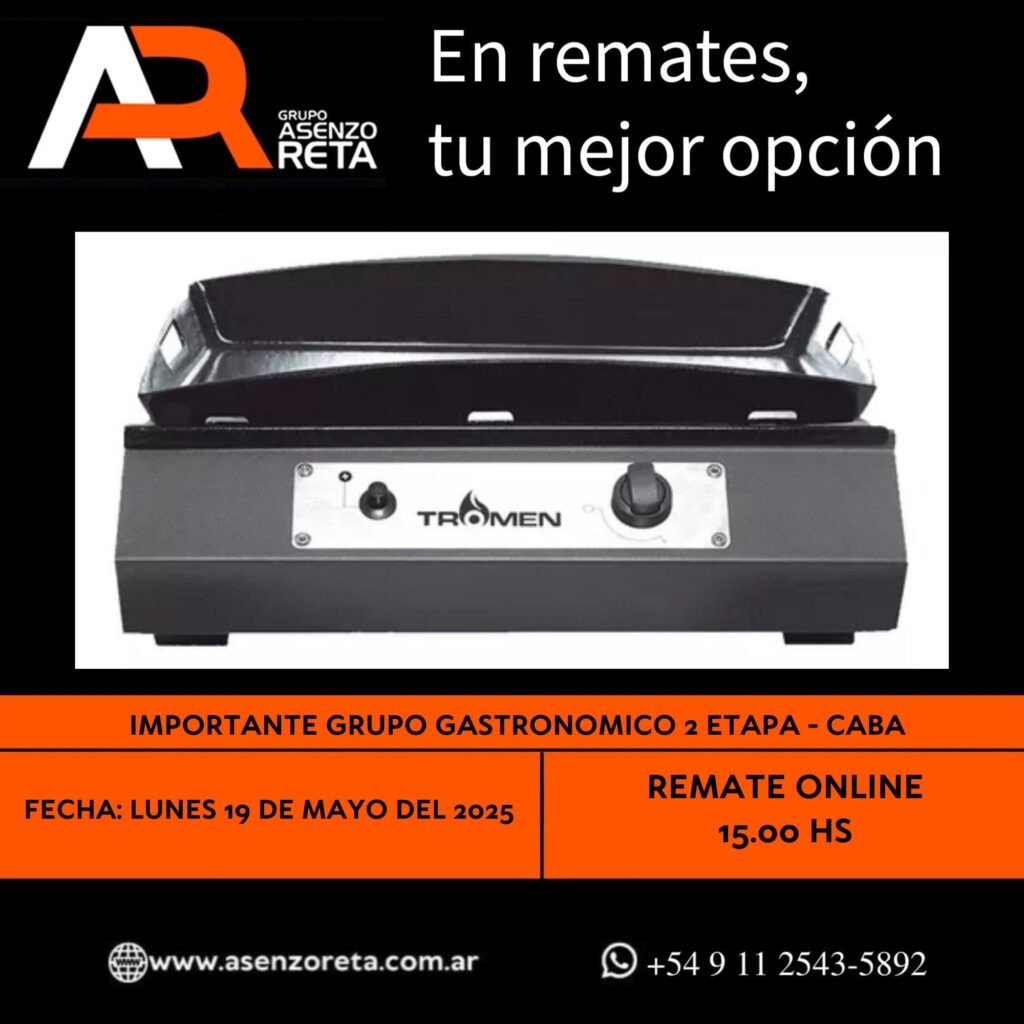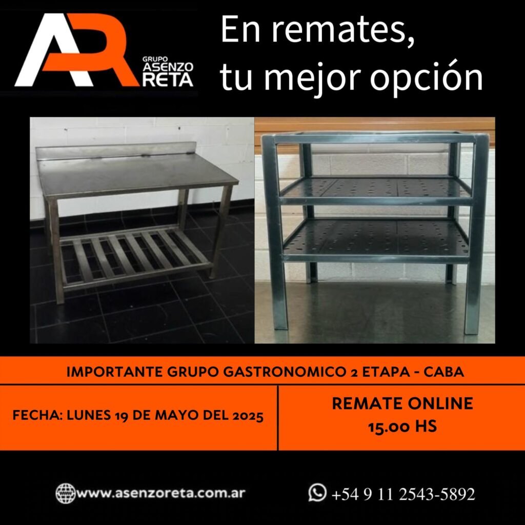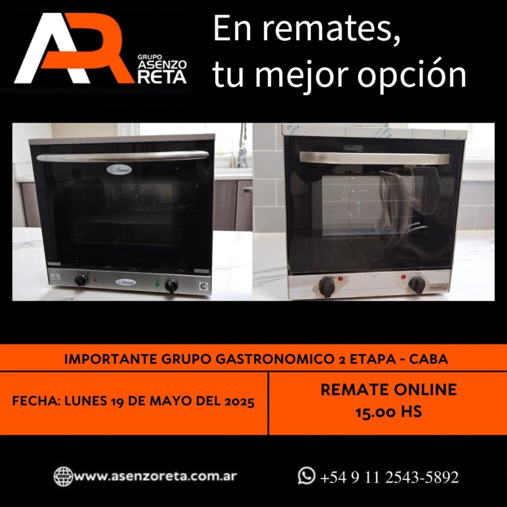 573° IMPORTANTE GRUPO GASTRONOMICO 2DA ETAPA – CABA – LUNES 19 DE MAYO DEL 2025. INICIO DEL REMATE 15.00 HS PODES DESCARGARTE LOS PDF O CONSULTARNOS POR WHATSAPP PARA MAS INFORMACION! RECUERDE SOLICITAR SU LINEA DE CREDITO PARA PARTICIPAR DEL REMATE