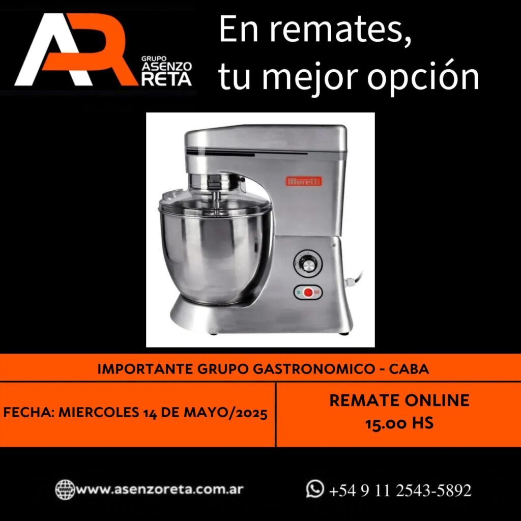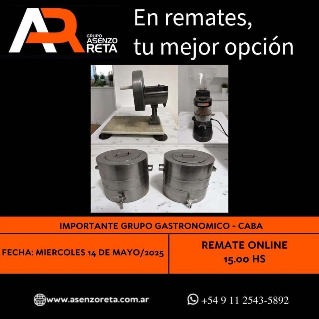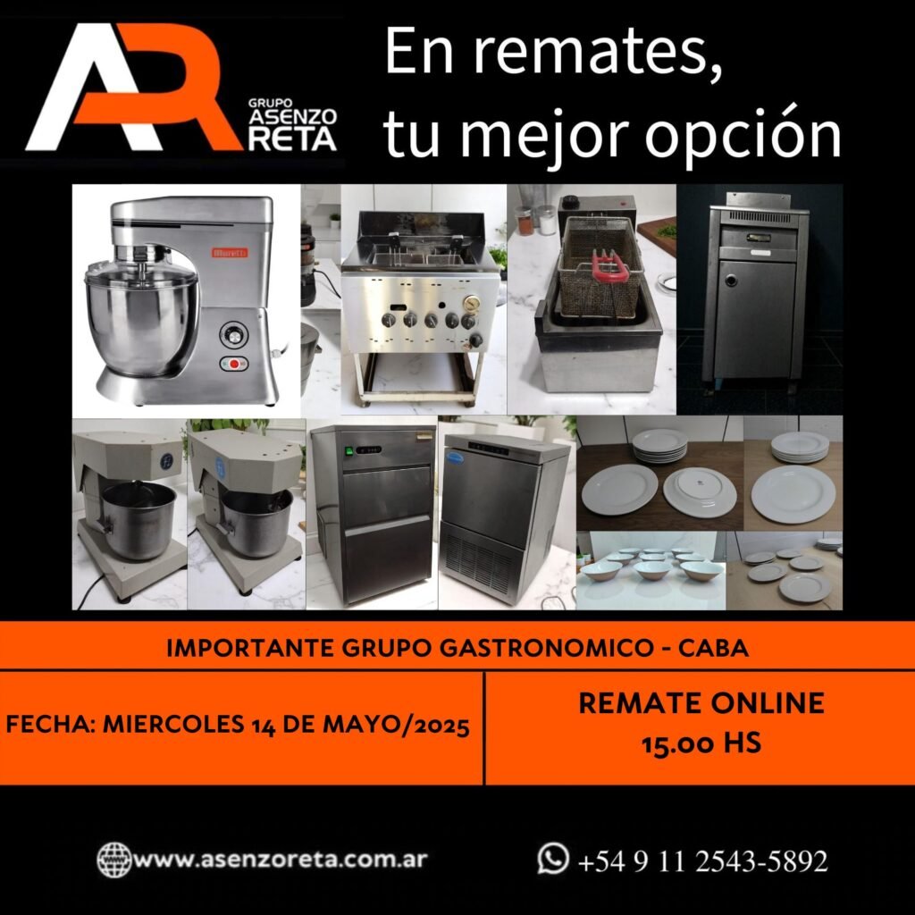 572° IMPORTANTE GRUPO GASTRONOMICO – CABA – MIÉRCOLES 14 DE MAYO DEL 2025. INICIO DEL REMATE 15.00 HS PODES DESCARGARTE LOS PDF O CONSULTARNOS POR WHATSAPP PARA MAS INFORMACION! RECUERDE SOLICITAR SU LINEA DE CREDITO PARA PARTICIPAR DEL REMATE