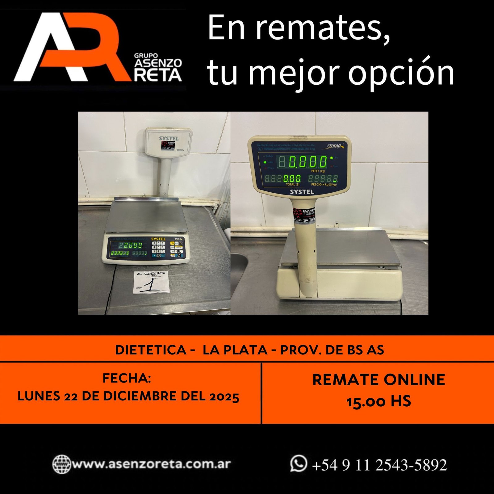 EXCELENTE REMATE SIN BASE AL MEJOR POSTOR!! LUNES 22 DE DICIEMBRE DEL 2025. INICIO DEL REMATE 15:00 HS PODES DESCARGARTE LOS PDF O CONSULTARNOS POR WHATSAPP PARA MAS INFORMACION! RECUERDE SOLICITAR SU LINEA DE CREDITO PARA PARTICIPAR DEL REMATE