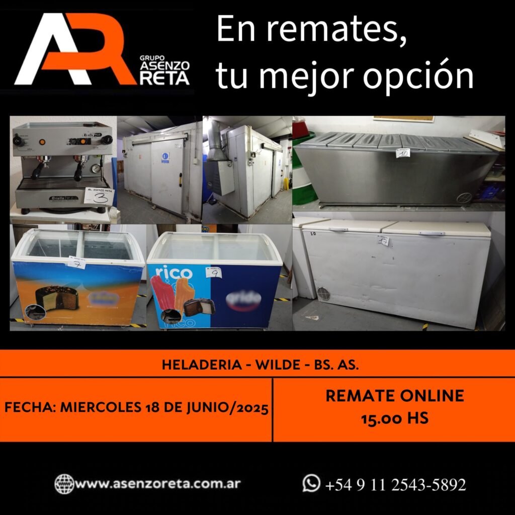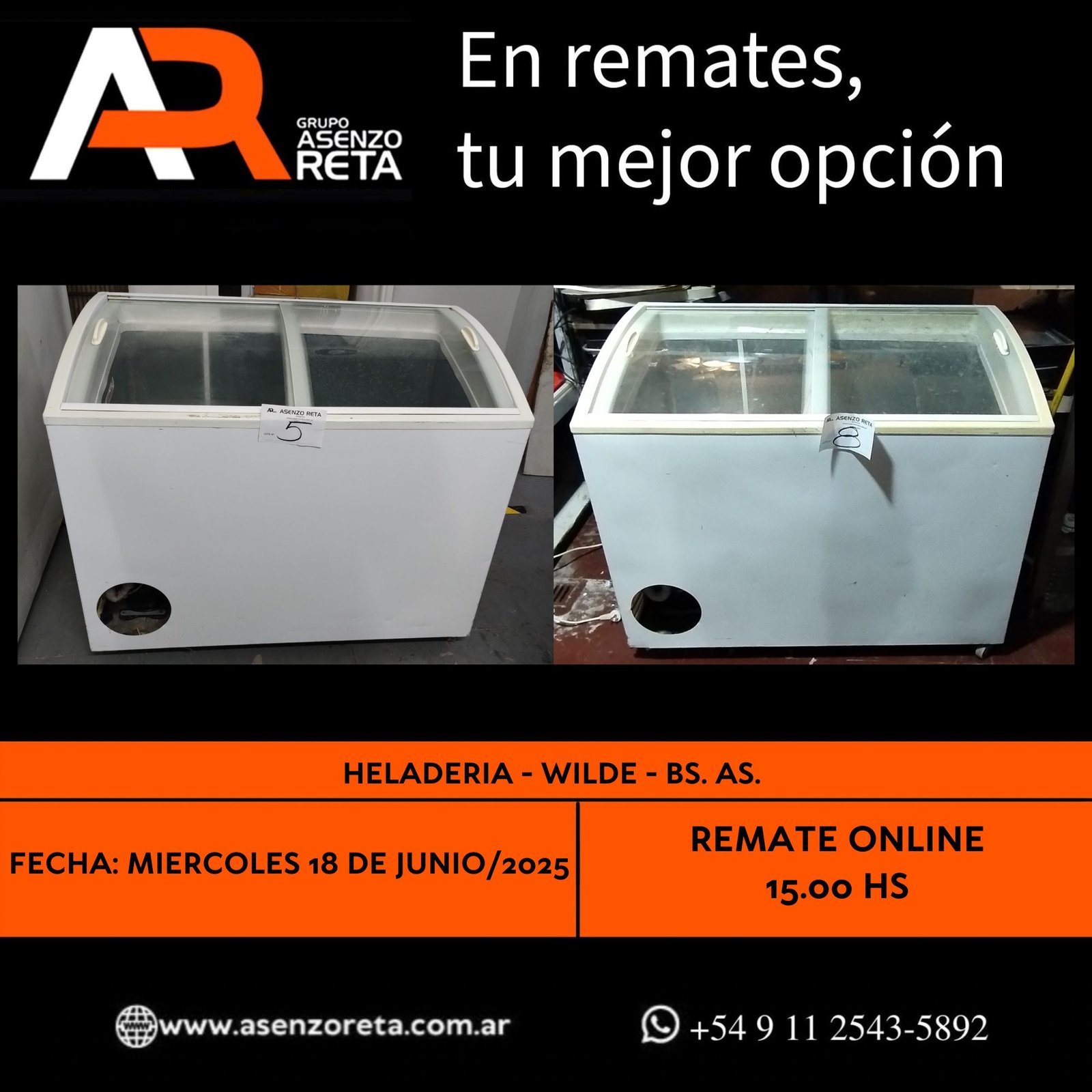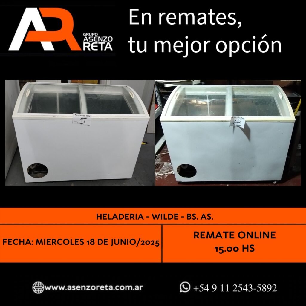 582° HELADERIA – WILDE – BS. AS. – MIERCOLES 18 DE JUNIO DEL 2025. INICIO DEL REMATE 15.00 HS PODES DESCARGARTE LOS PDF O CONSULTARNOS POR WHATSAPP PARA MAS INFORMACION! RECUERDE SOLICITAR SU LINEA DE CREDITO PARA PARTICIPAR DEL REMATE