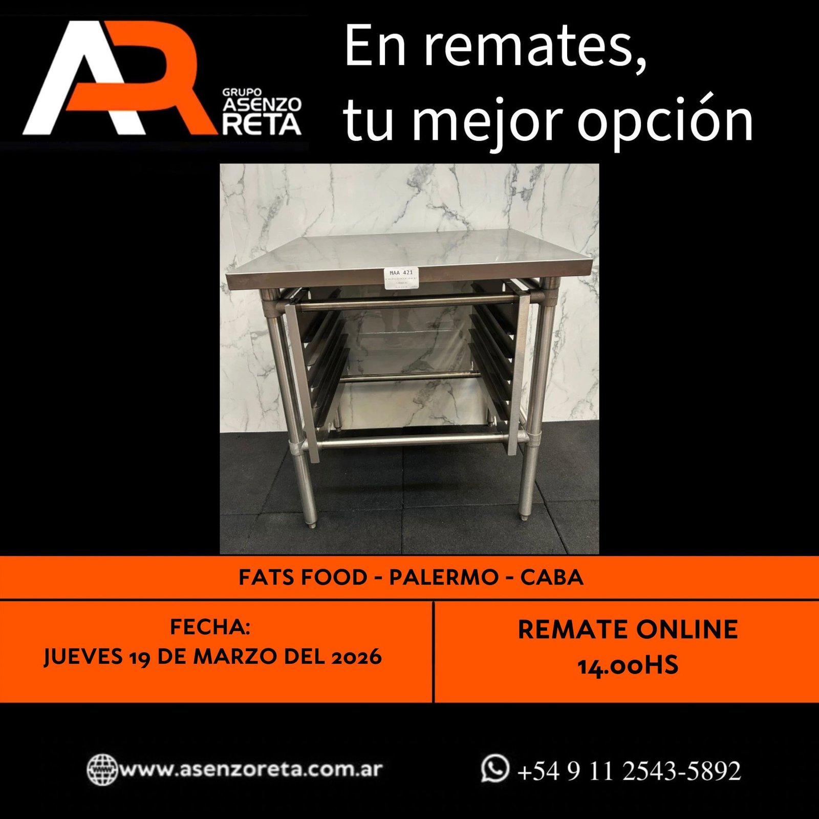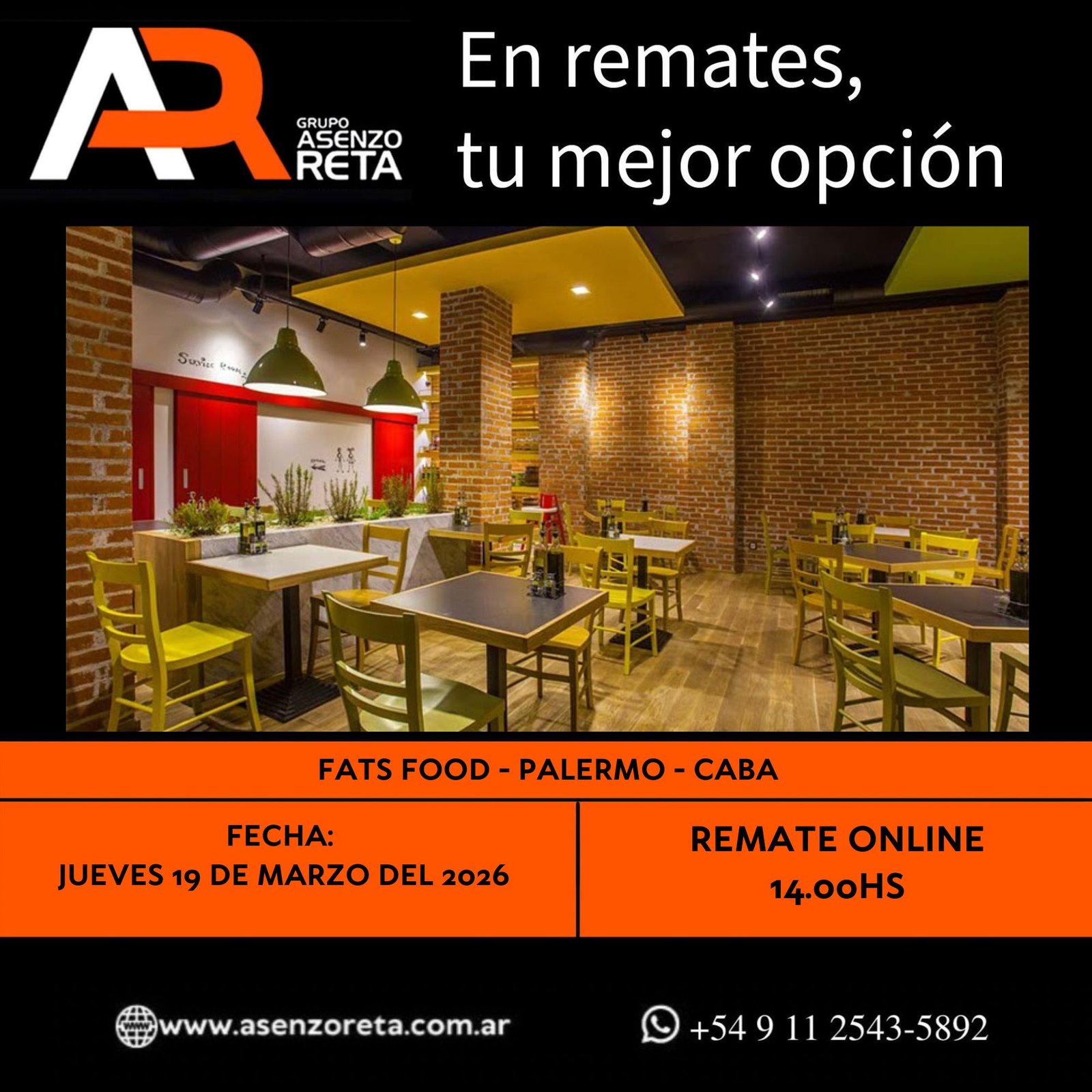 EXCELENTE REMATE SIN BASE AL MEJOR POSTOR!! JUEVES 19 DE MARZO DEL 2026. INICIO DEL REMATE 14:00 HS PODES DESCARGARTE LOS PDF O CONSULTARNOS POR WHATSAPP PARA MAS INFORMACION! RECUERDE SOLICITAR SU LINEA DE CREDITO PARA PARTICIPAR DEL REMATE