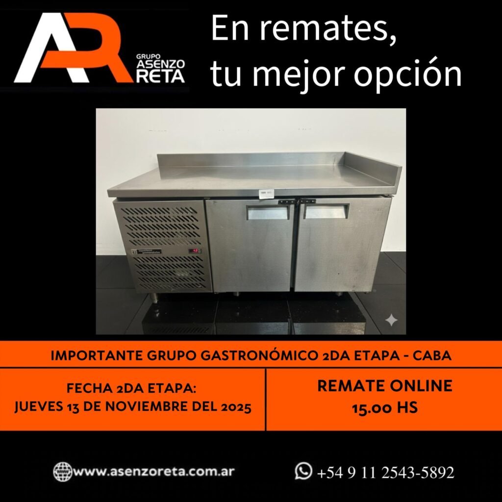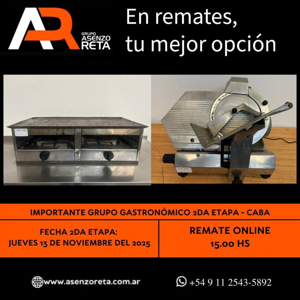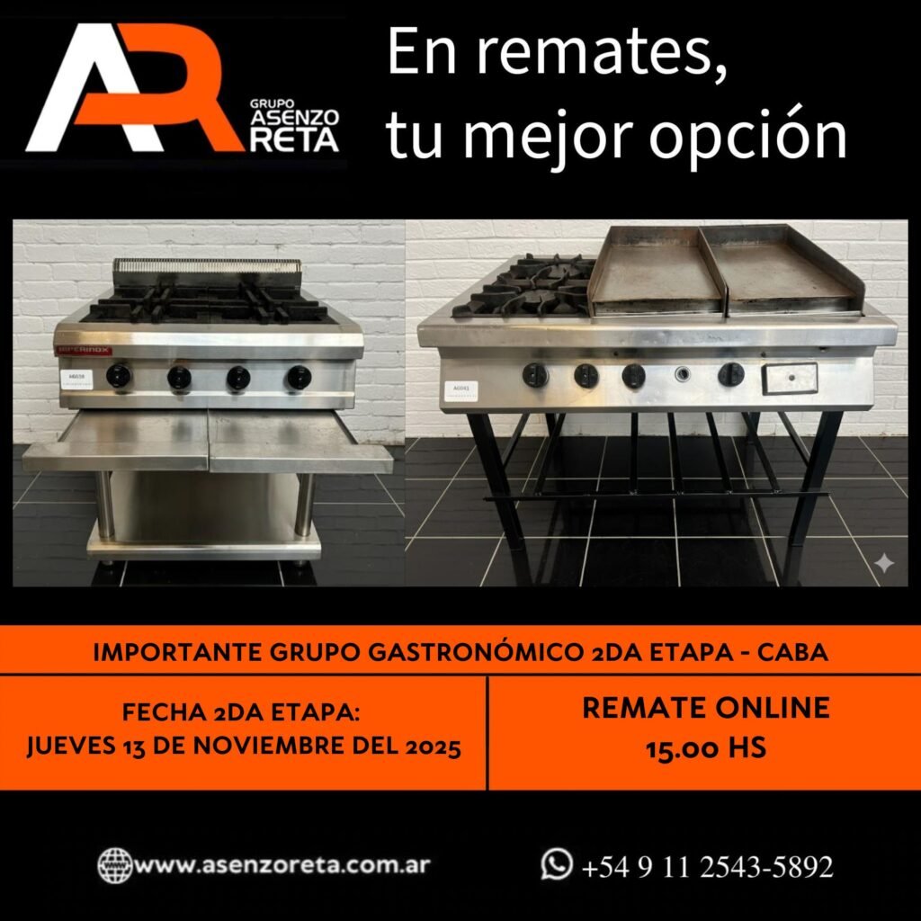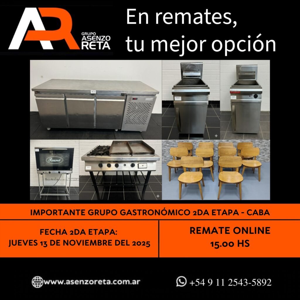 615° IMPORTANTE GRUPO GASTRONÓMICO 2DA ETAPA – CABA – JUEVES 13 DE NOVIEMBRE DEL 2025. INICIO DEL REMATE 15.00 HS PODES DESCARGARTE LOS PDF O CONSULTARNOS POR WHATSAPP PARA MAS INFORMACION! RECUERDE SOLICITAR SU LINEA DE CREDITO PARA PARTICIPAR DEL REMATE