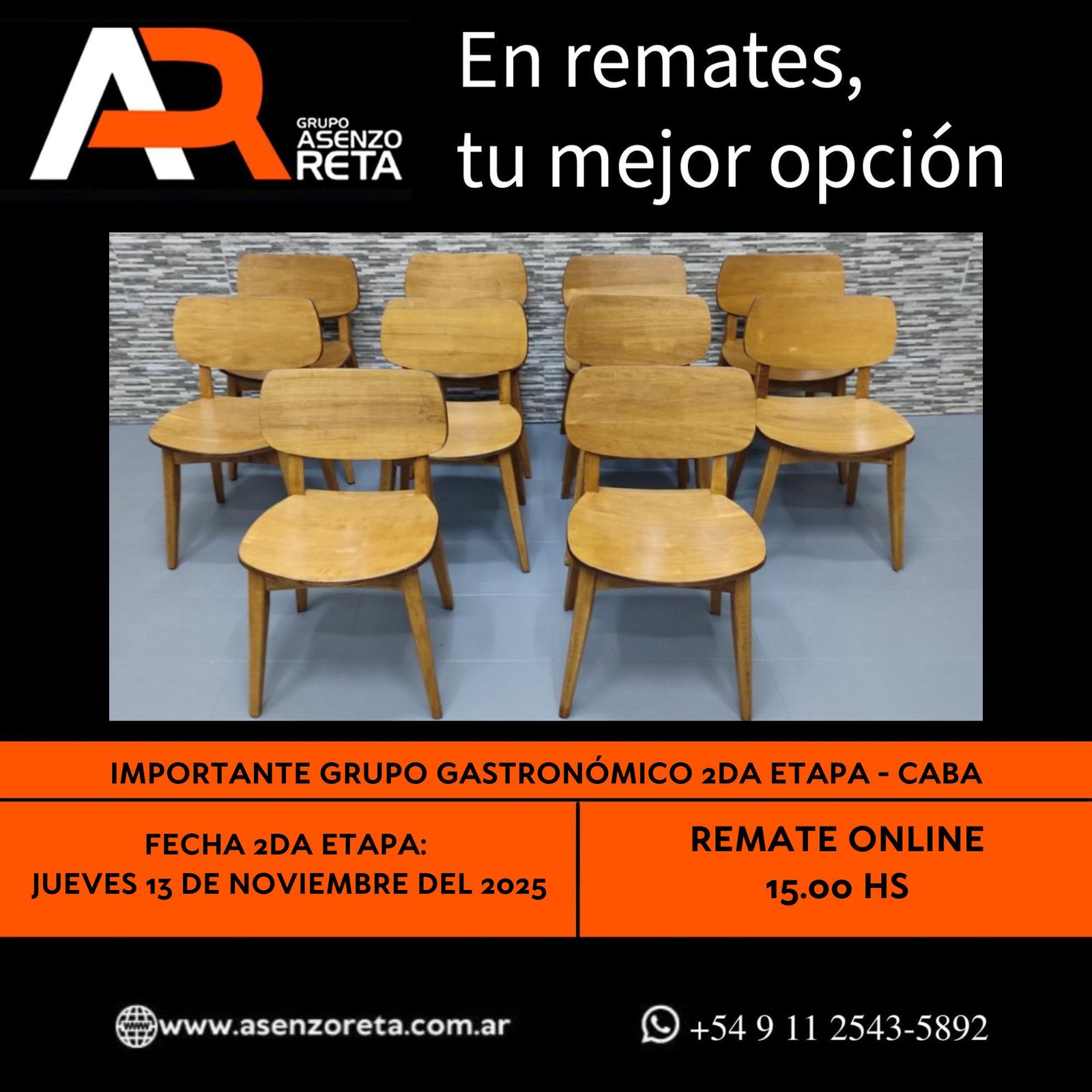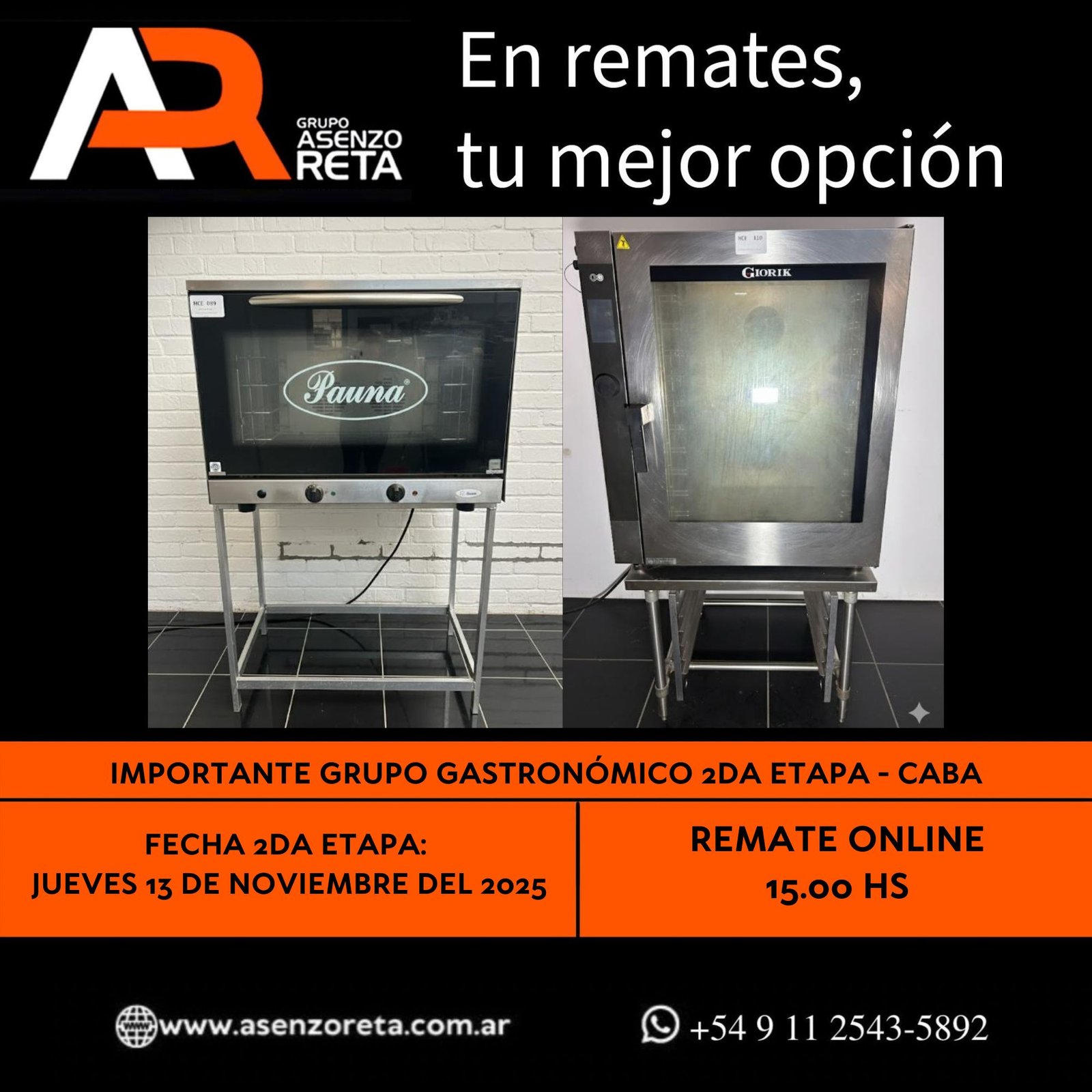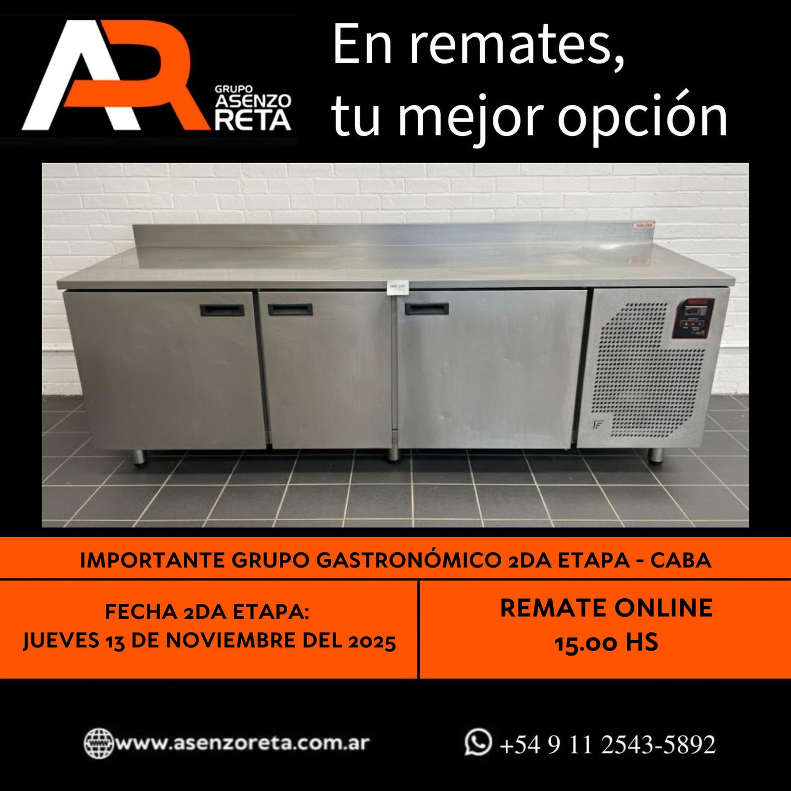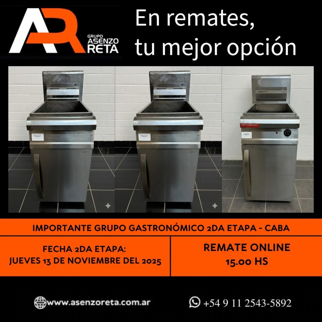 615° IMPORTANTE GRUPO GASTRONÓMICO 2DA ETAPA – CABA – JUEVES 13 DE NOVIEMBRE DEL 2025. INICIO DEL REMATE 15.00 HS PODES DESCARGARTE LOS PDF O CONSULTARNOS POR WHATSAPP PARA MAS INFORMACION! RECUERDE SOLICITAR SU LINEA DE CREDITO PARA PARTICIPAR DEL REMATE