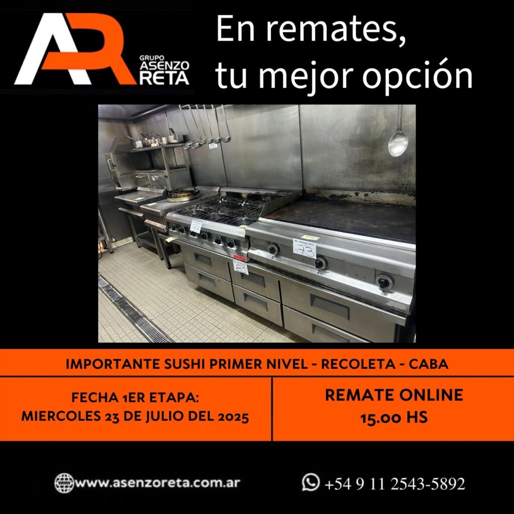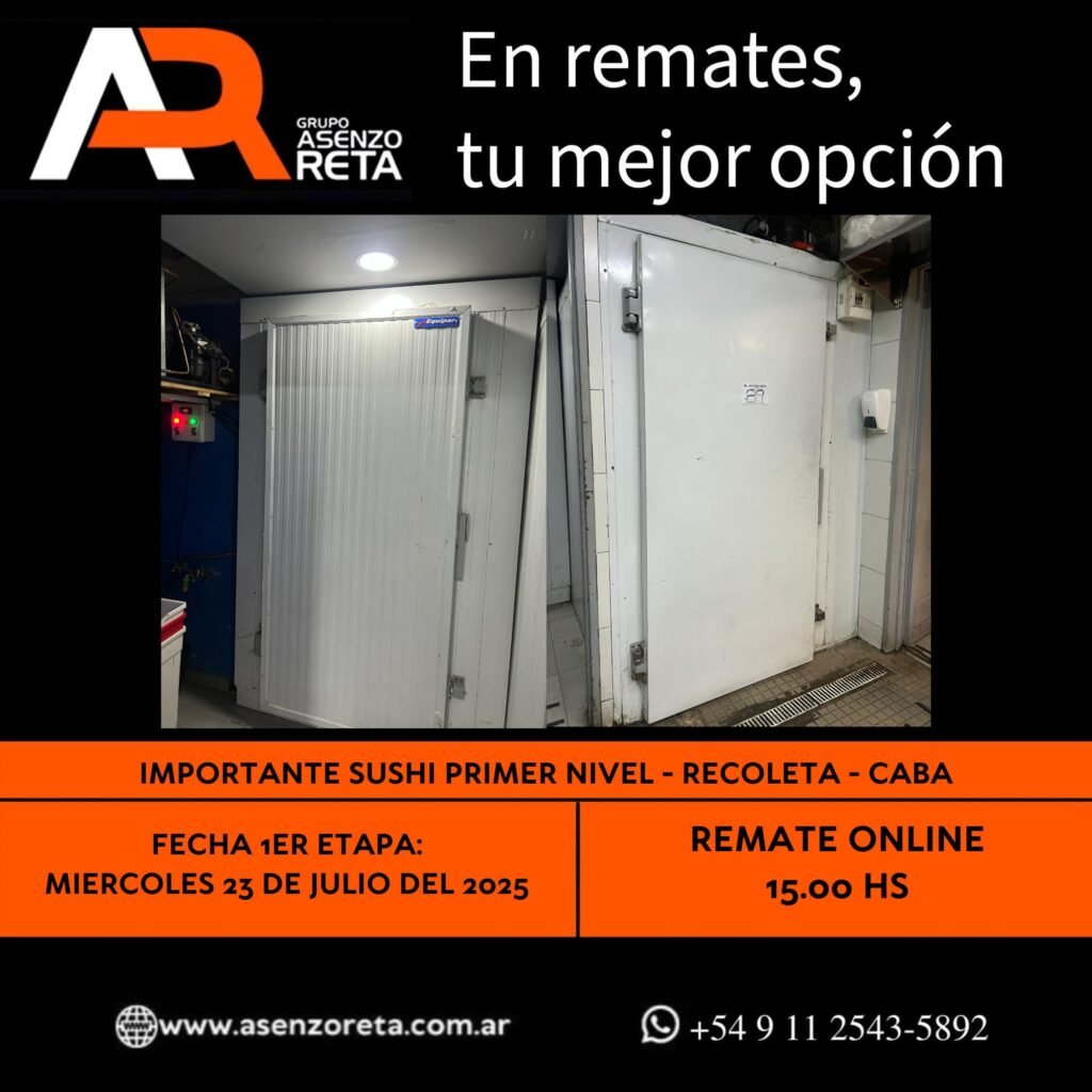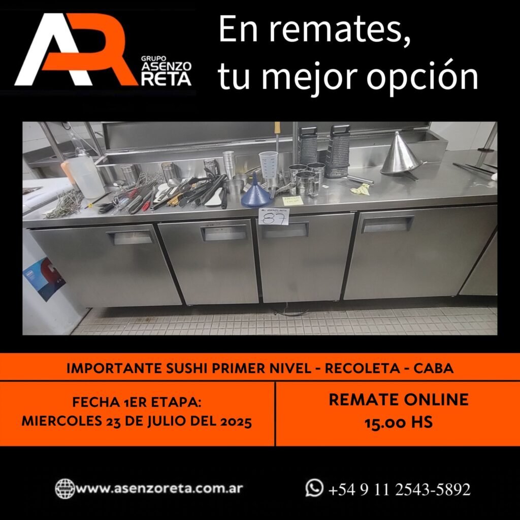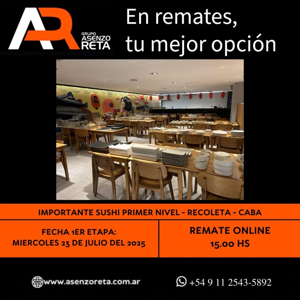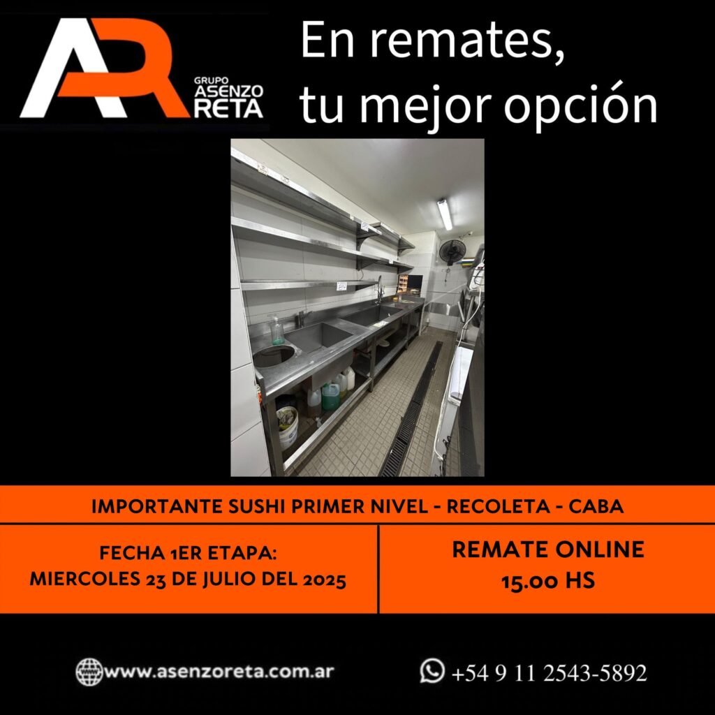 593° IMPORTANTE SUSHI PRIMER NIVEL – RECOLETA – CABA – MIERCOLES 23 DE JULIO DEL 2025. INICIO DEL REMATE 15.00 HS PODES DESCARGARTE LOS PDF O CONSULTARNOS POR WHATSAPP PARA MAS INFORMACION! RECUERDE SOLICITAR SU LINEA DE CREDITO PARA PARTICIPAR DEL REMATE