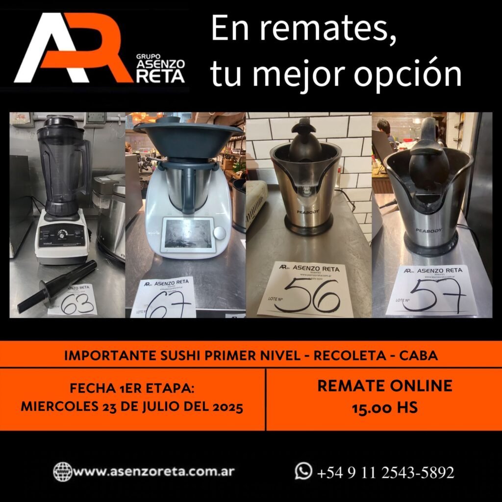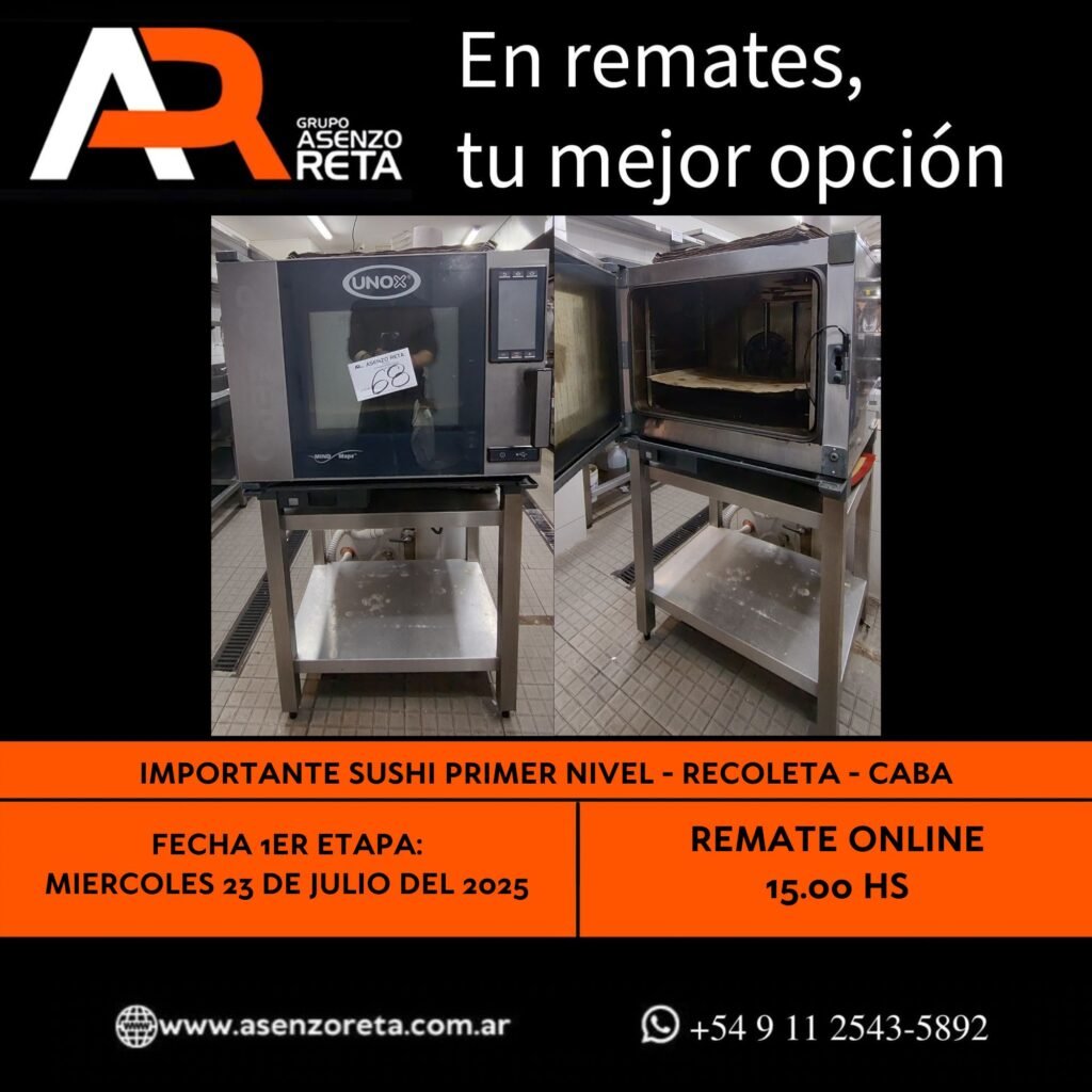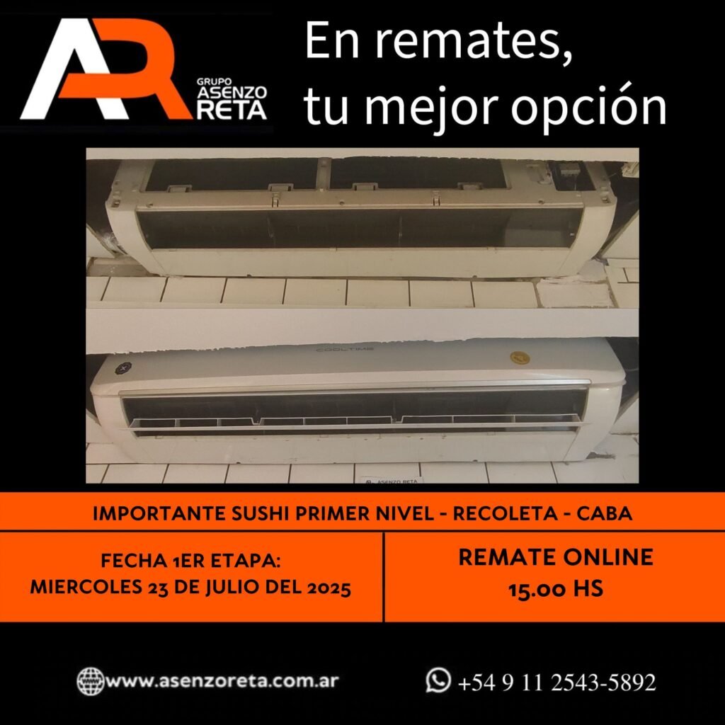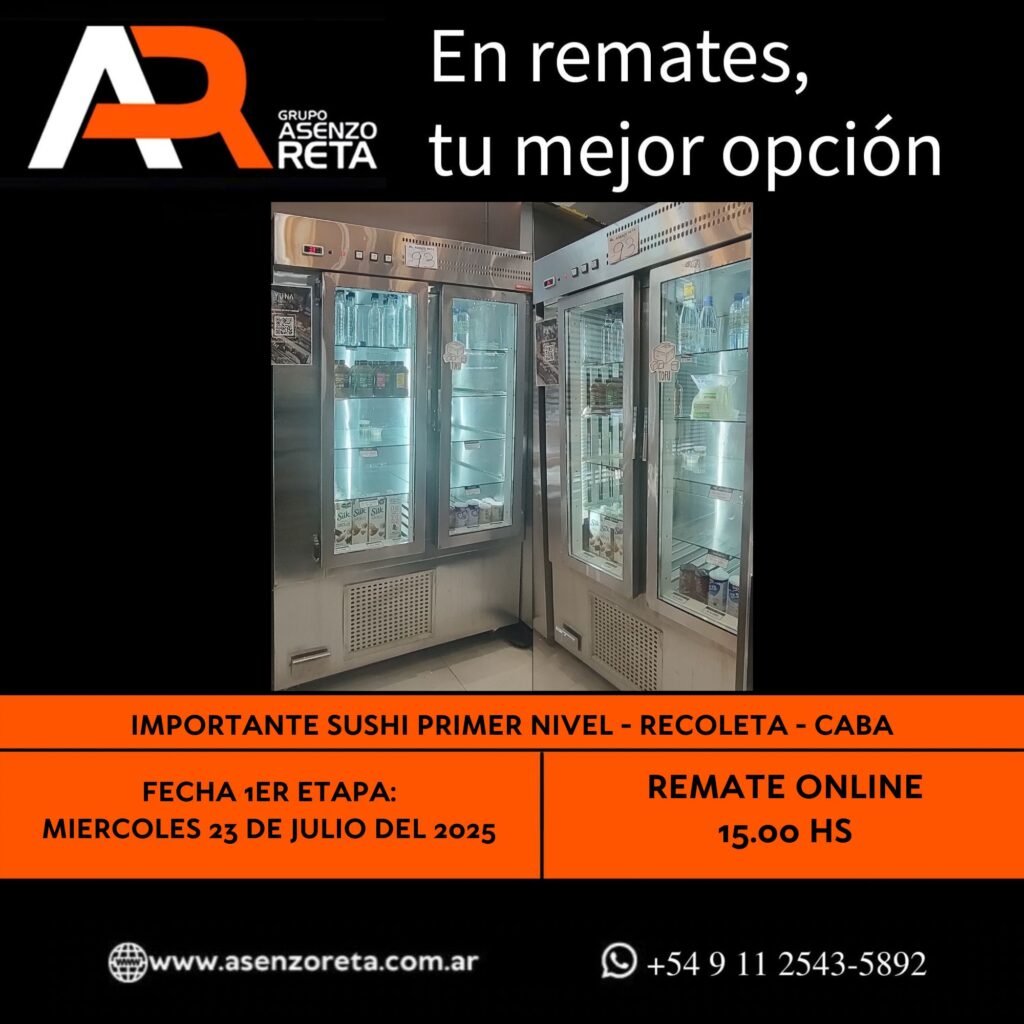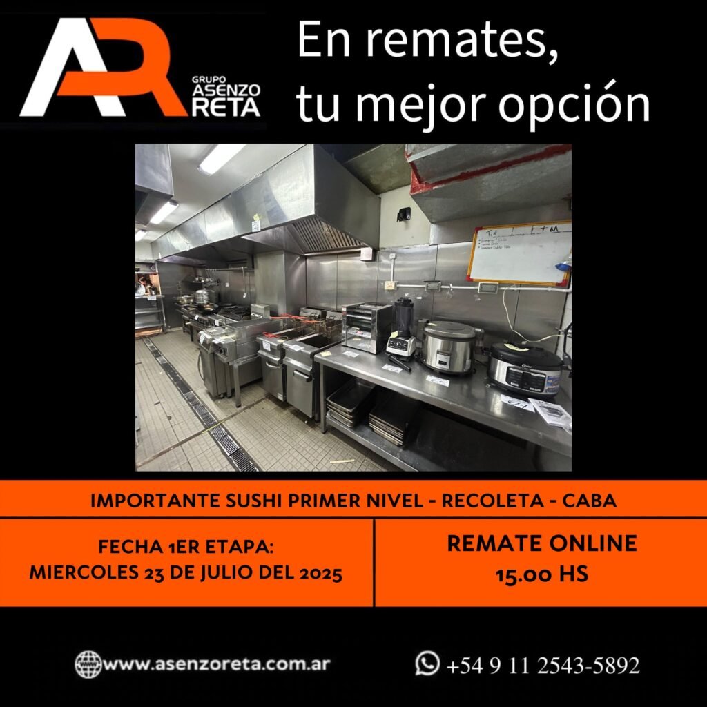 593° IMPORTANTE SUSHI PRIMER NIVEL – RECOLETA – CABA – MIERCOLES 23 DE JULIO DEL 2025. INICIO DEL REMATE 15.00 HS PODES DESCARGARTE LOS PDF O CONSULTARNOS POR WHATSAPP PARA MAS INFORMACION! RECUERDE SOLICITAR SU LINEA DE CREDITO PARA PARTICIPAR DEL REMATE