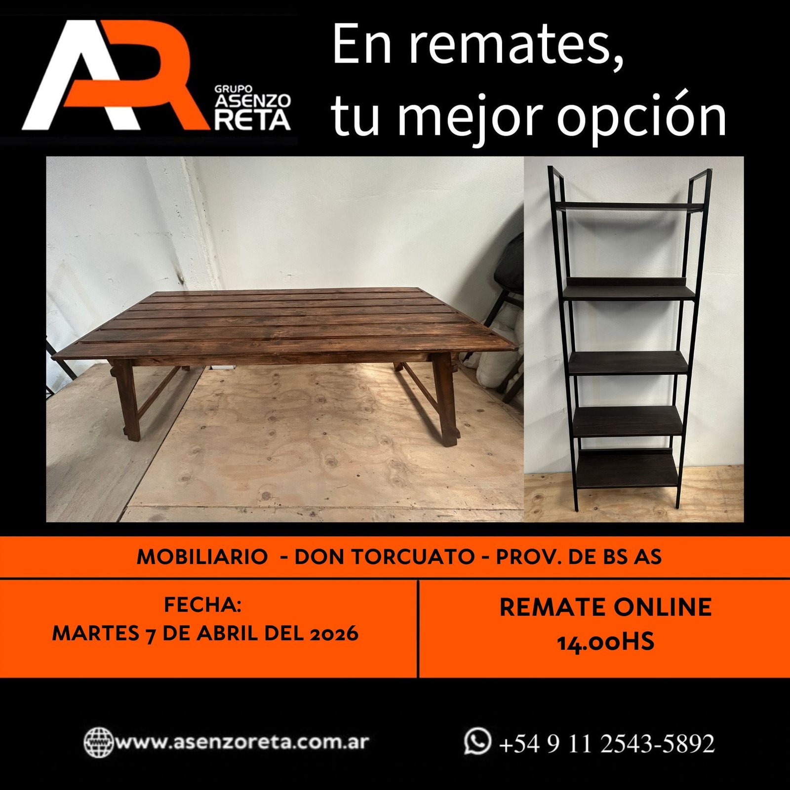 Remate Mobiliario - Don Torcuato - Prov. de Bs. As. - Martes 14/04/26