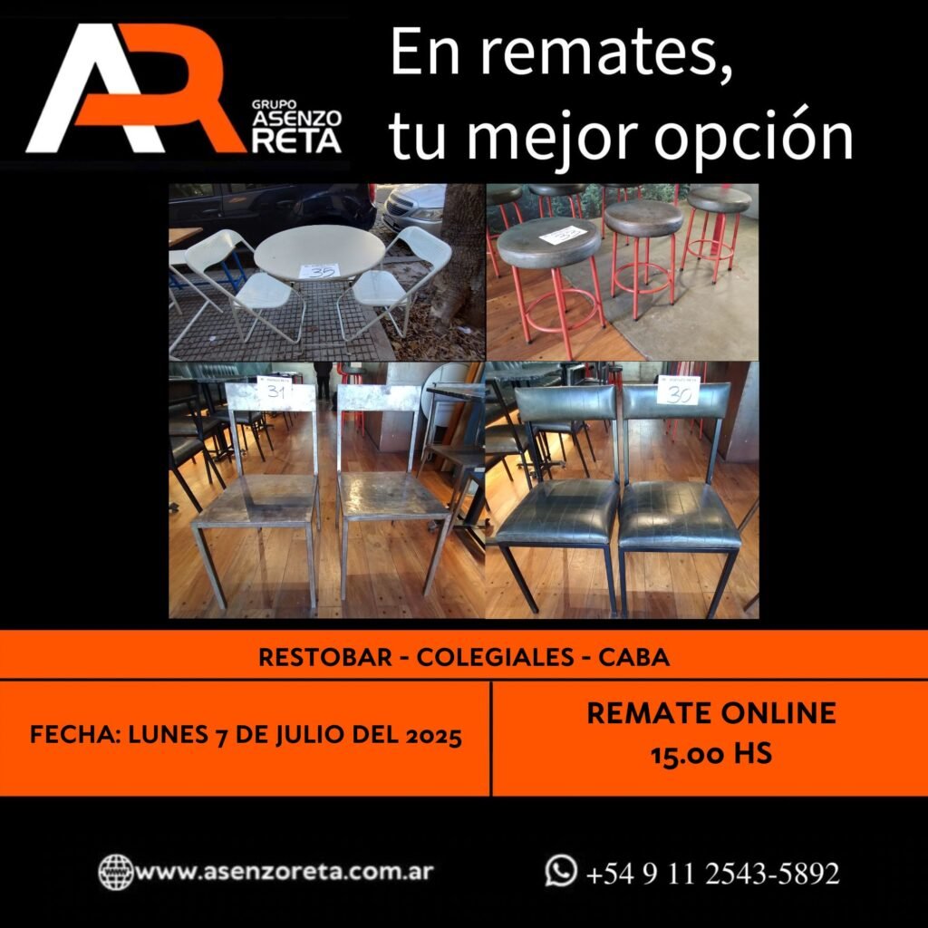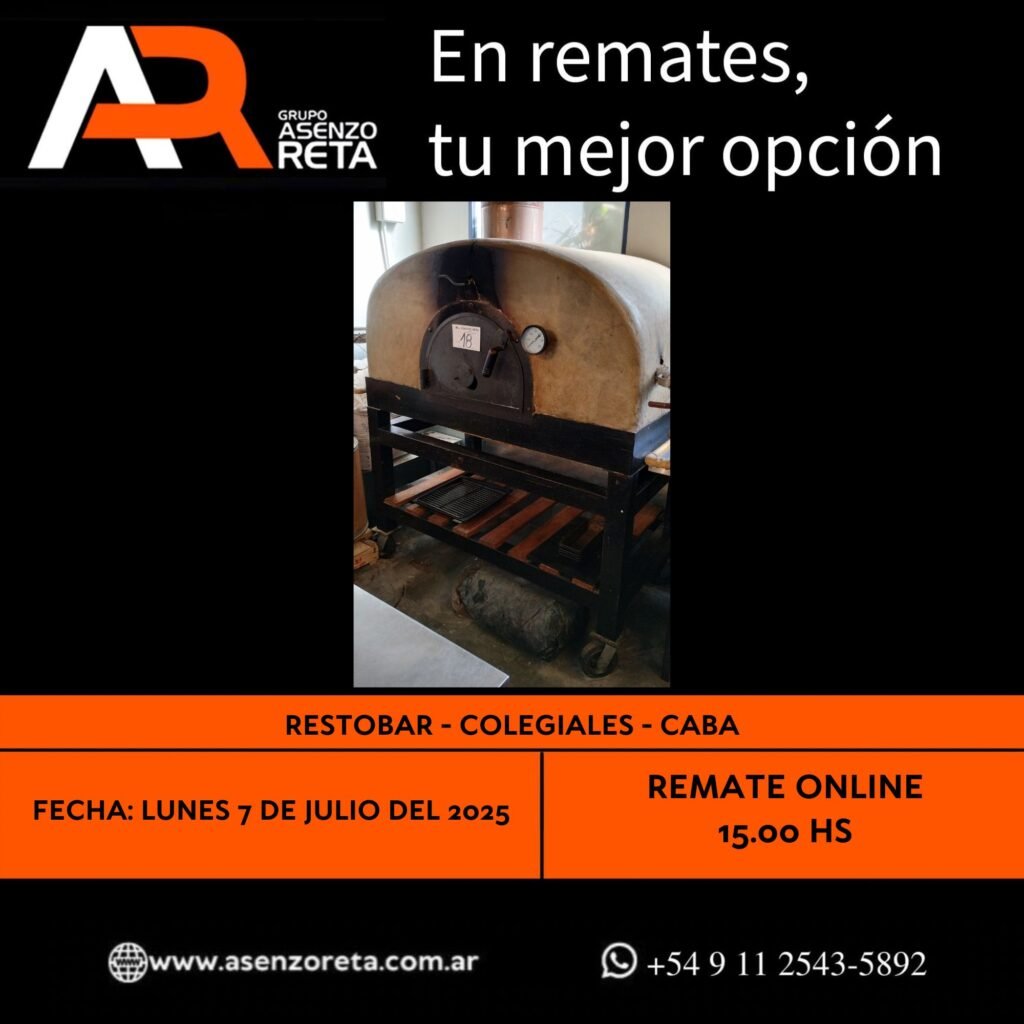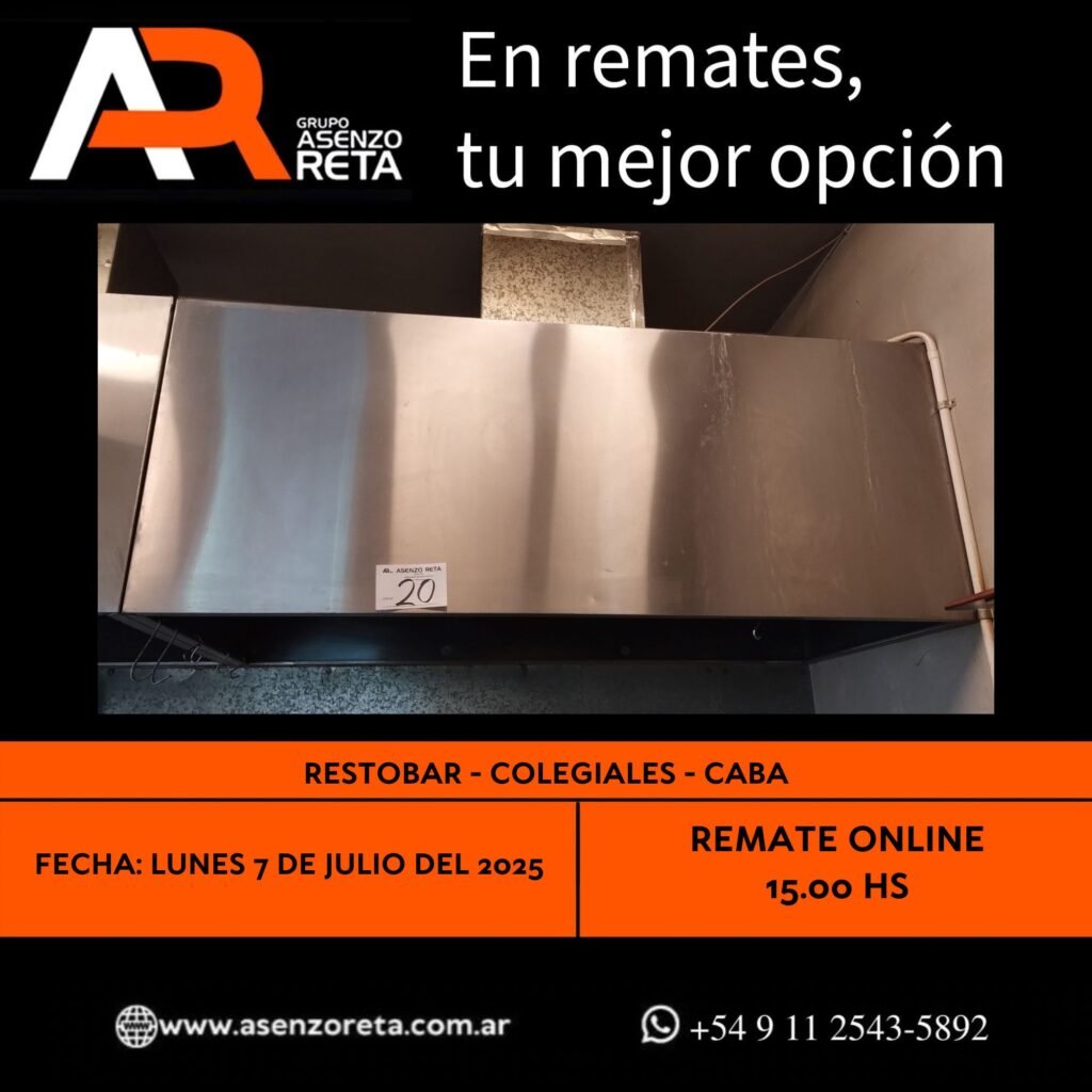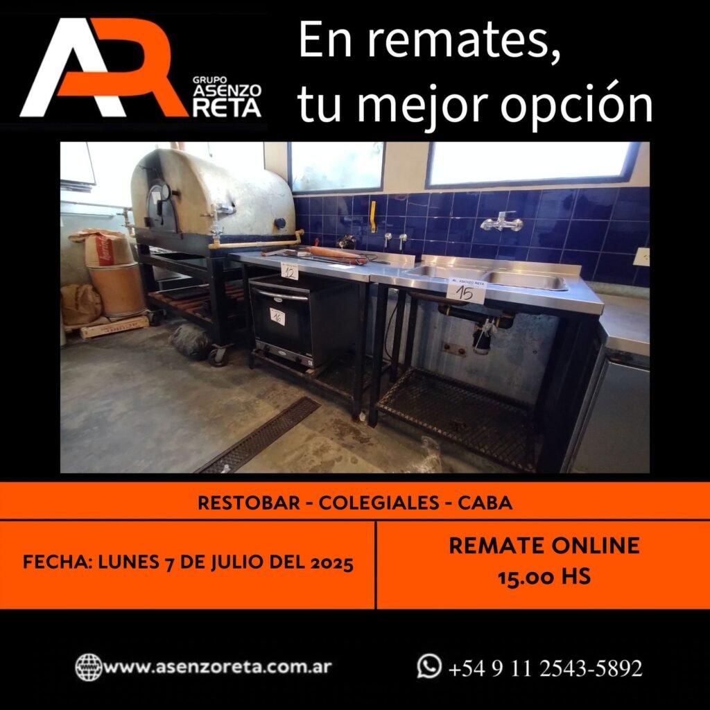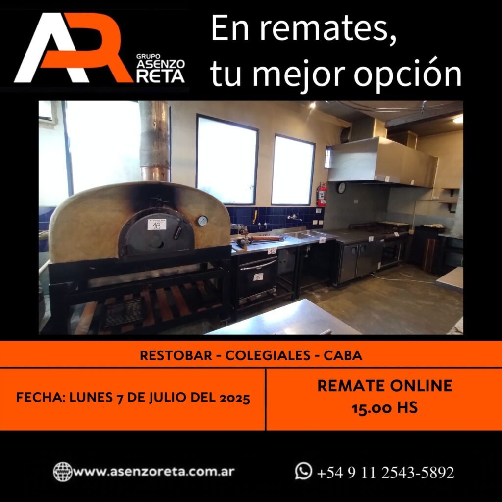 588° RESTOBAR – COLEGIALES – CABA – LUNES 7 DE JULIO DEL 2025. INICIO DEL REMATE 15.00 HS PODES DESCARGARTE LOS PDF O CONSULTARNOS POR WHATSAPP PARA MAS INFORMACION! RECUERDE SOLICITAR SU LINEA DE CREDITO PARA PARTICIPAR DEL REMATE