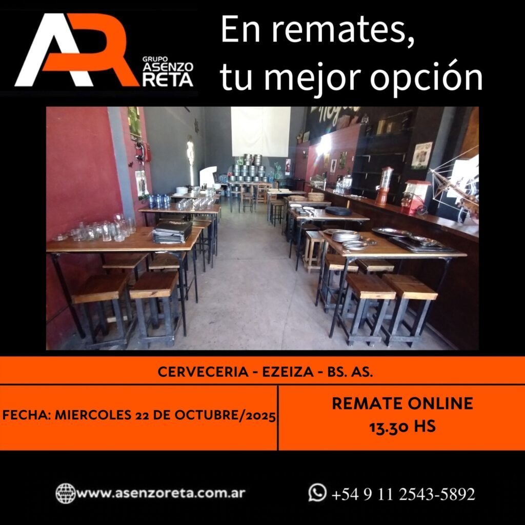 610° CERVECERIA – EZEIZA – BS. AS. – MIÉRCOLES 22 DE OCTUBRE DEL 2025. INICIO DEL REMATE 13.30 HS PODES DESCARGARTE LOS PDF O CONSULTARNOS POR WHATSAPP PARA MAS INFORMACION! RECUERDE SOLICITAR SU LINEA DE CREDITO PARA PARTICIPAR DEL REMATE