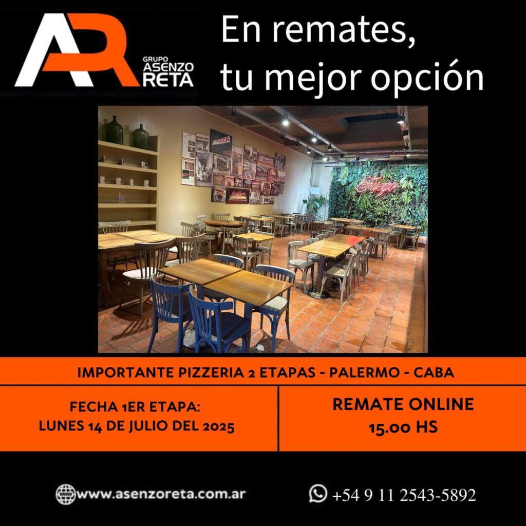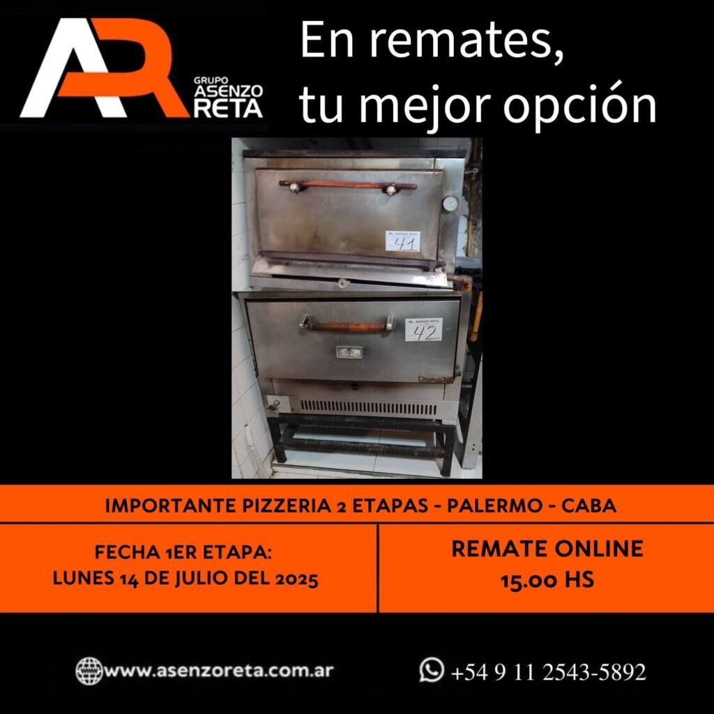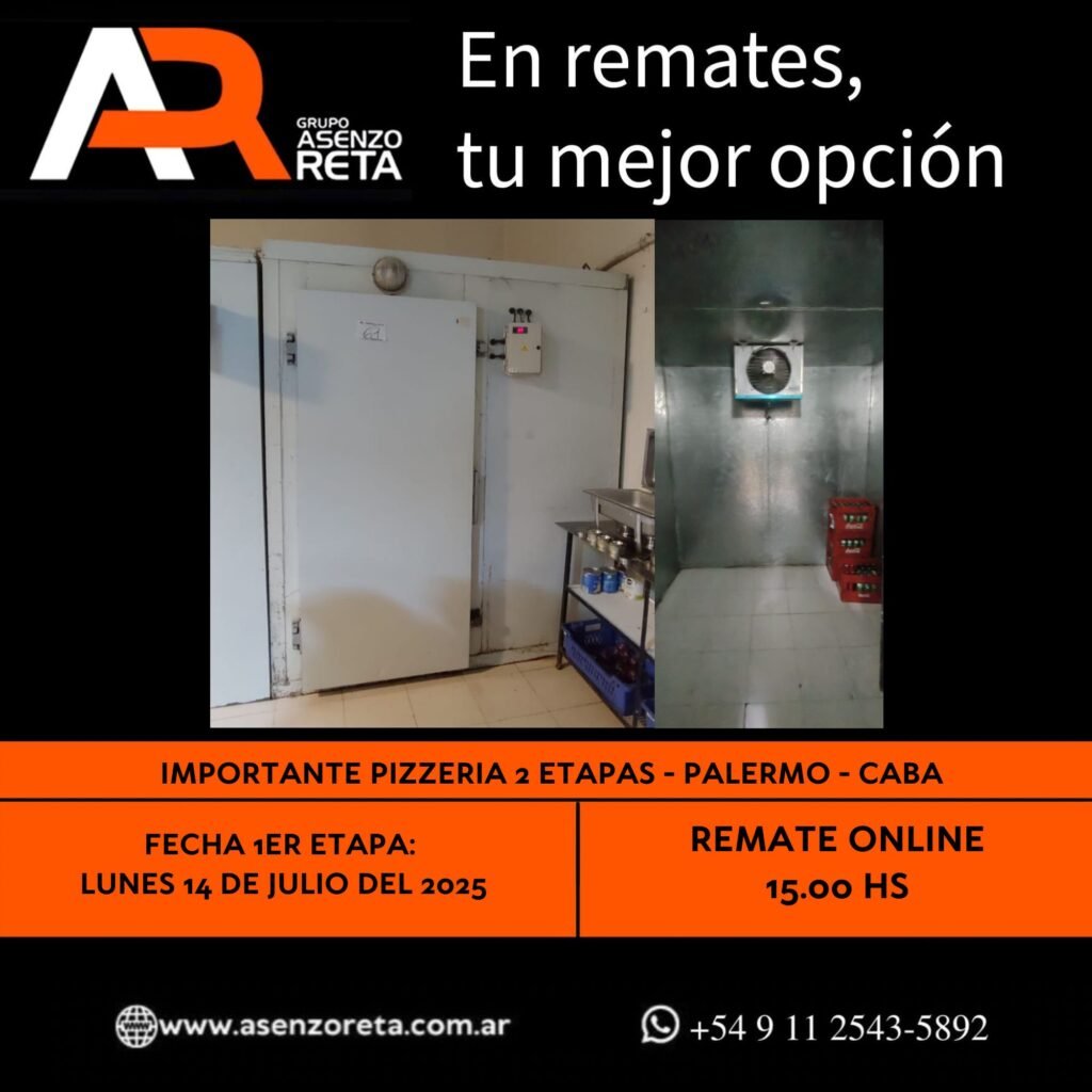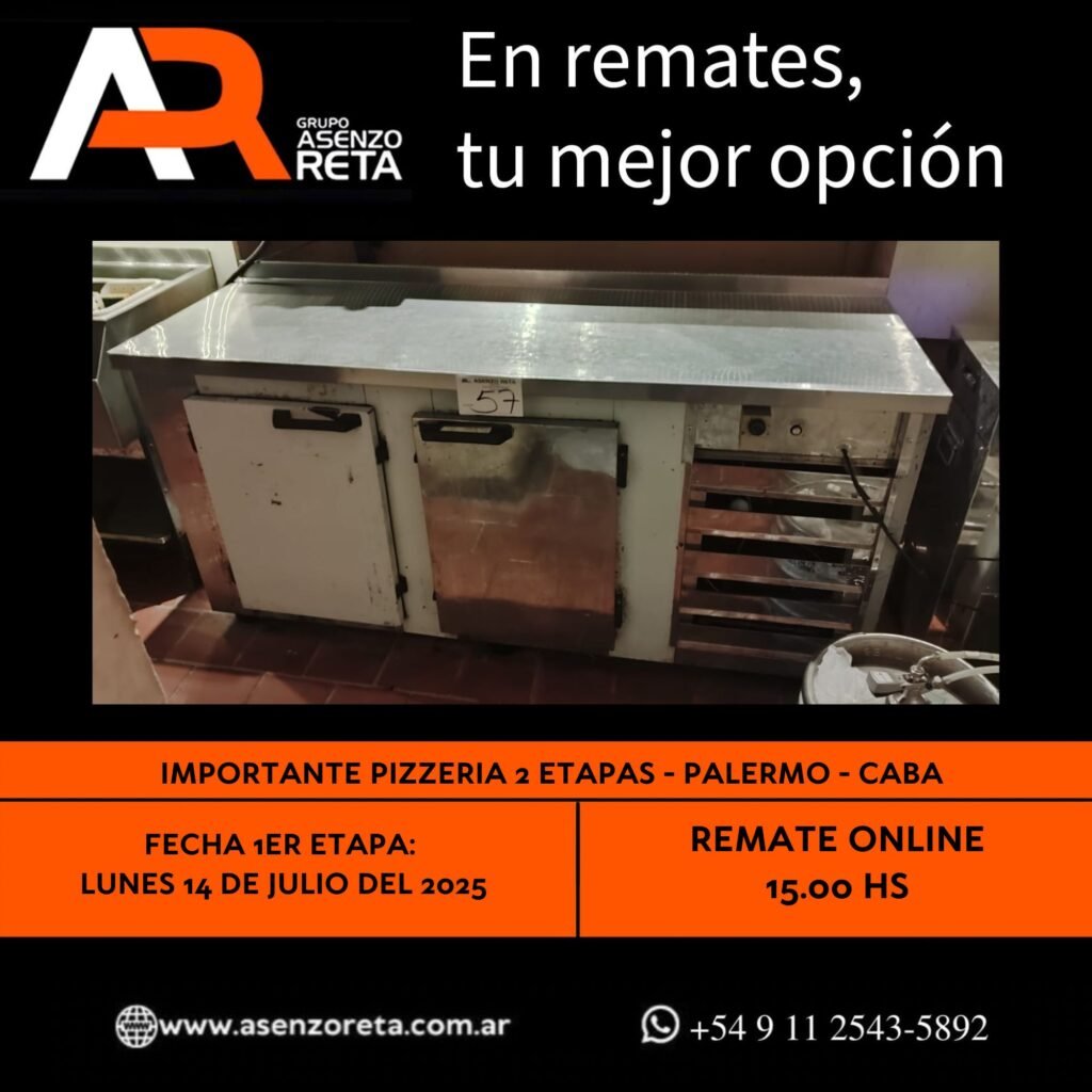 590° IMPORTANTE PIZZERIA 1ER ETAPA – PALERMO – CABA – LUNES 14 DE JULIO DEL 2025. INICIO DEL REMATE 15.00 HS PODES DESCARGARTE LOS PDF O CONSULTARNOS POR WHATSAPP PARA MAS INFORMACION! RECUERDE SOLICITAR SU LINEA DE CREDITO PARA PARTICIPAR DEL REMATE