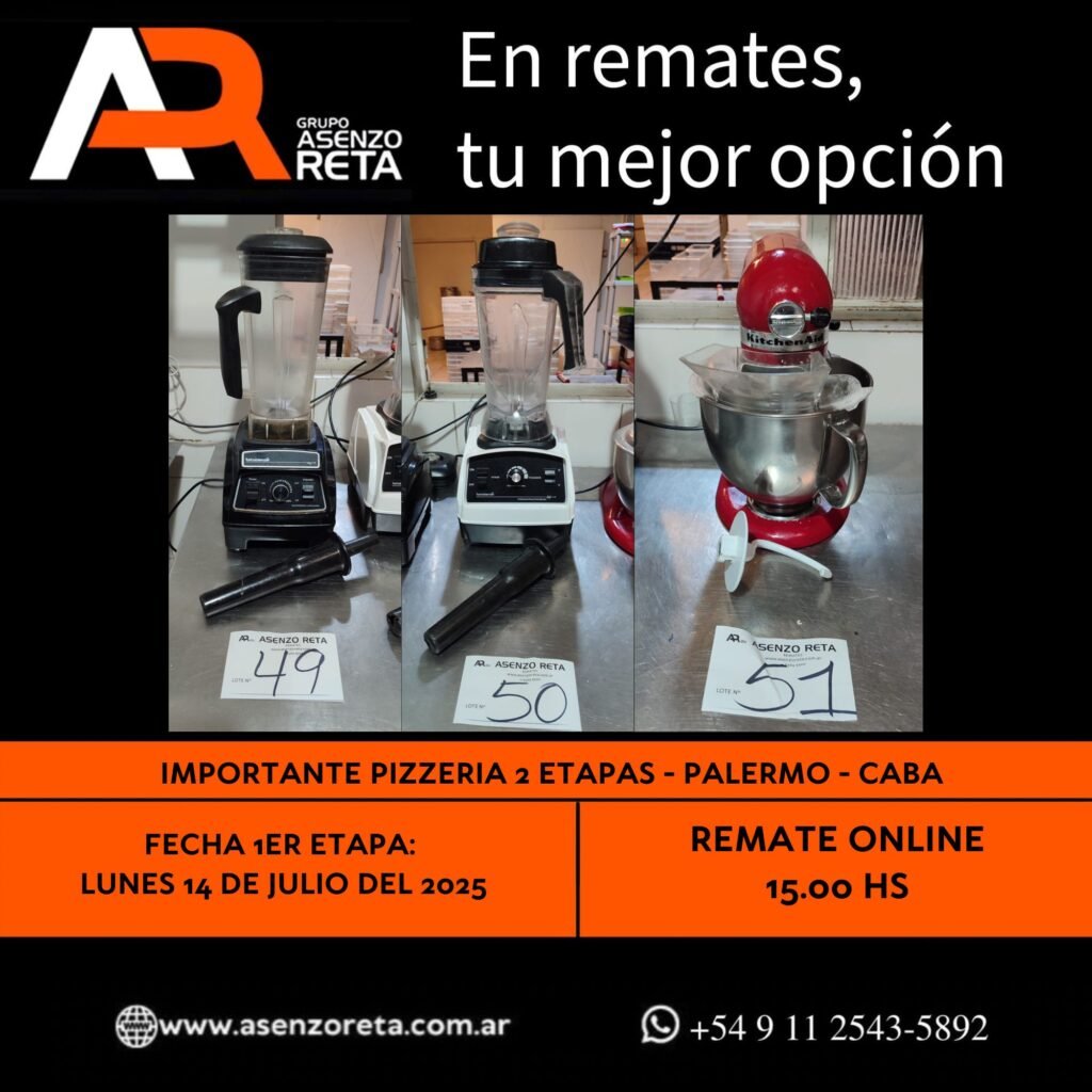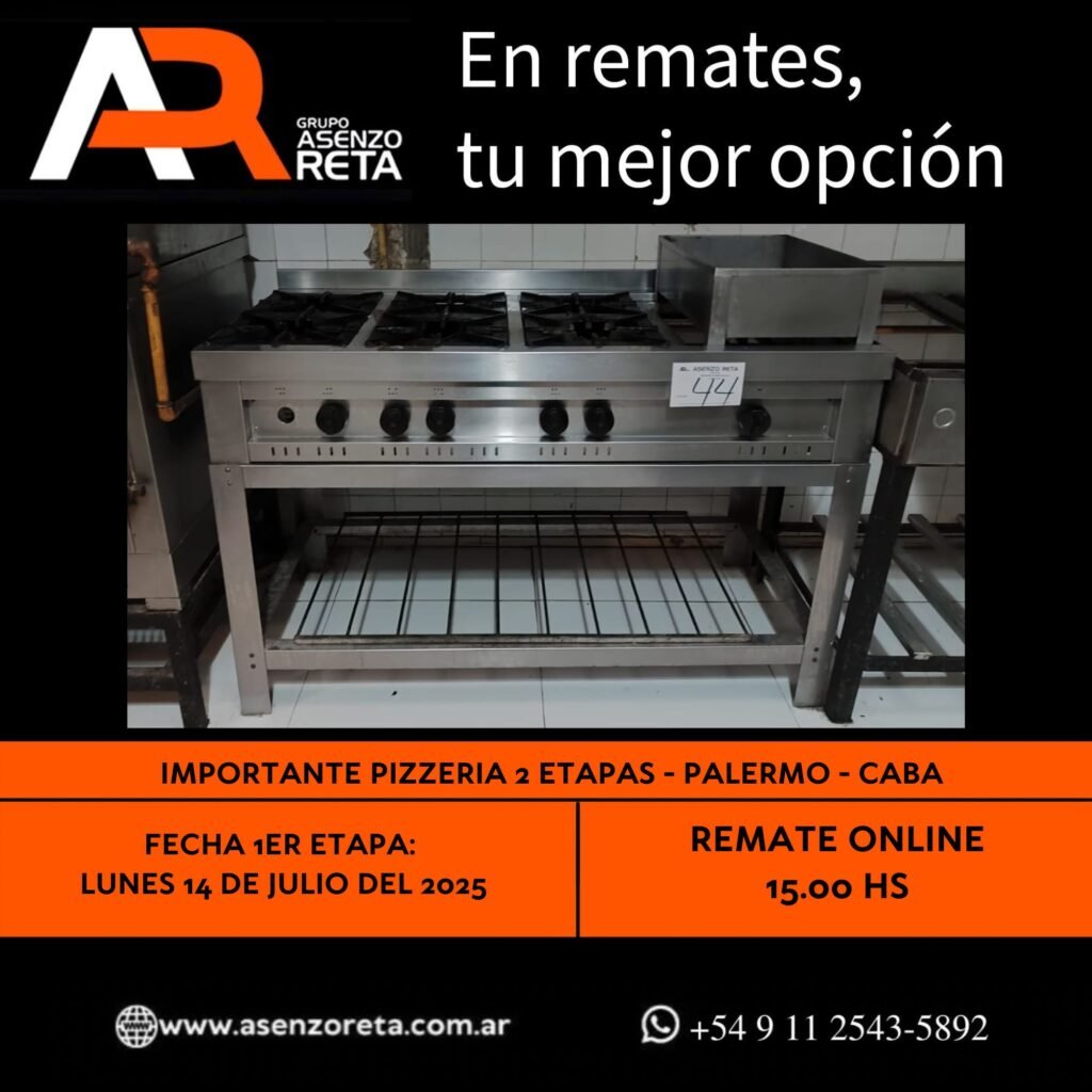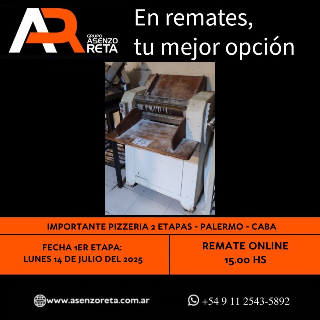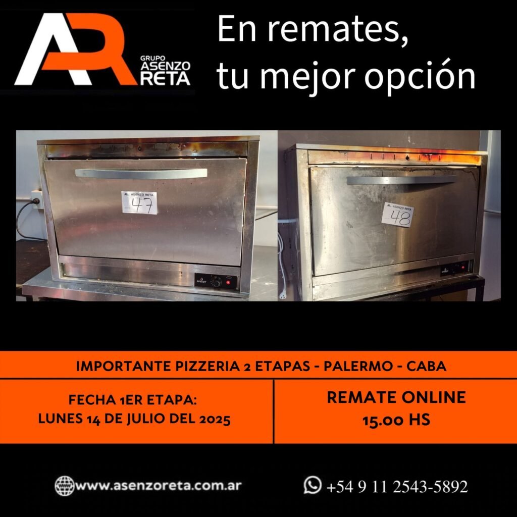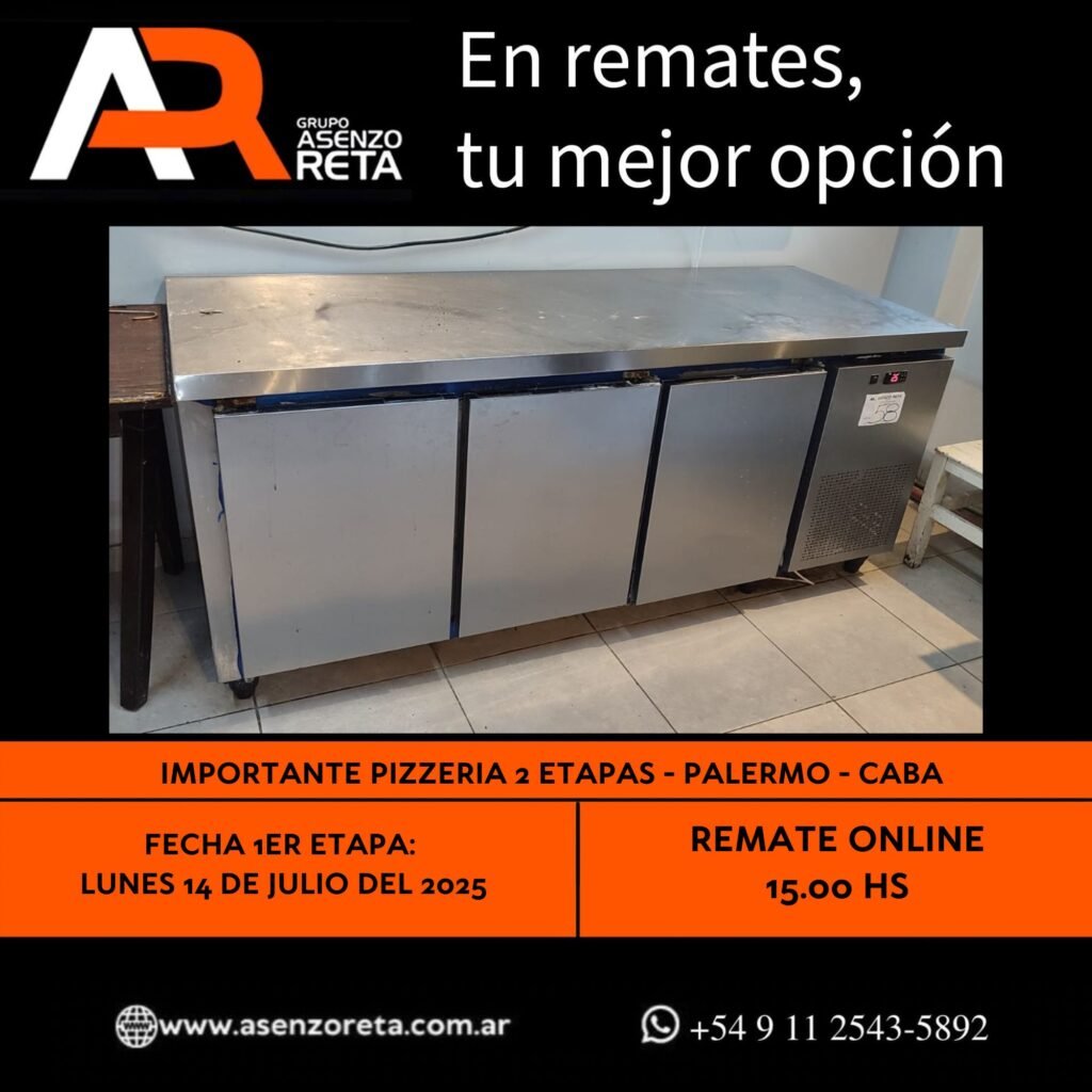 590° IMPORTANTE PIZZERIA 1ER ETAPA – PALERMO – CABA – LUNES 14 DE JULIO DEL 2025. INICIO DEL REMATE 15.00 HS PODES DESCARGARTE LOS PDF O CONSULTARNOS POR WHATSAPP PARA MAS INFORMACION! RECUERDE SOLICITAR SU LINEA DE CREDITO PARA PARTICIPAR DEL REMATE