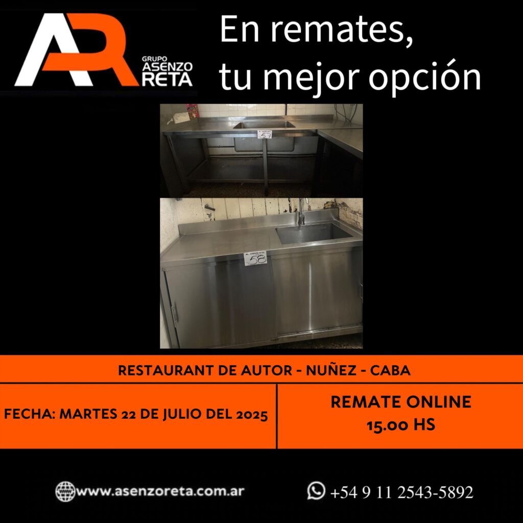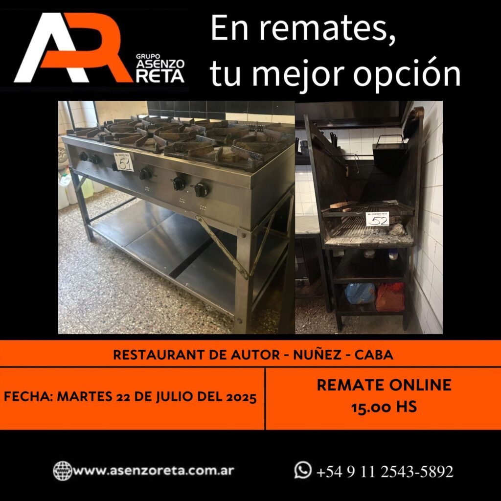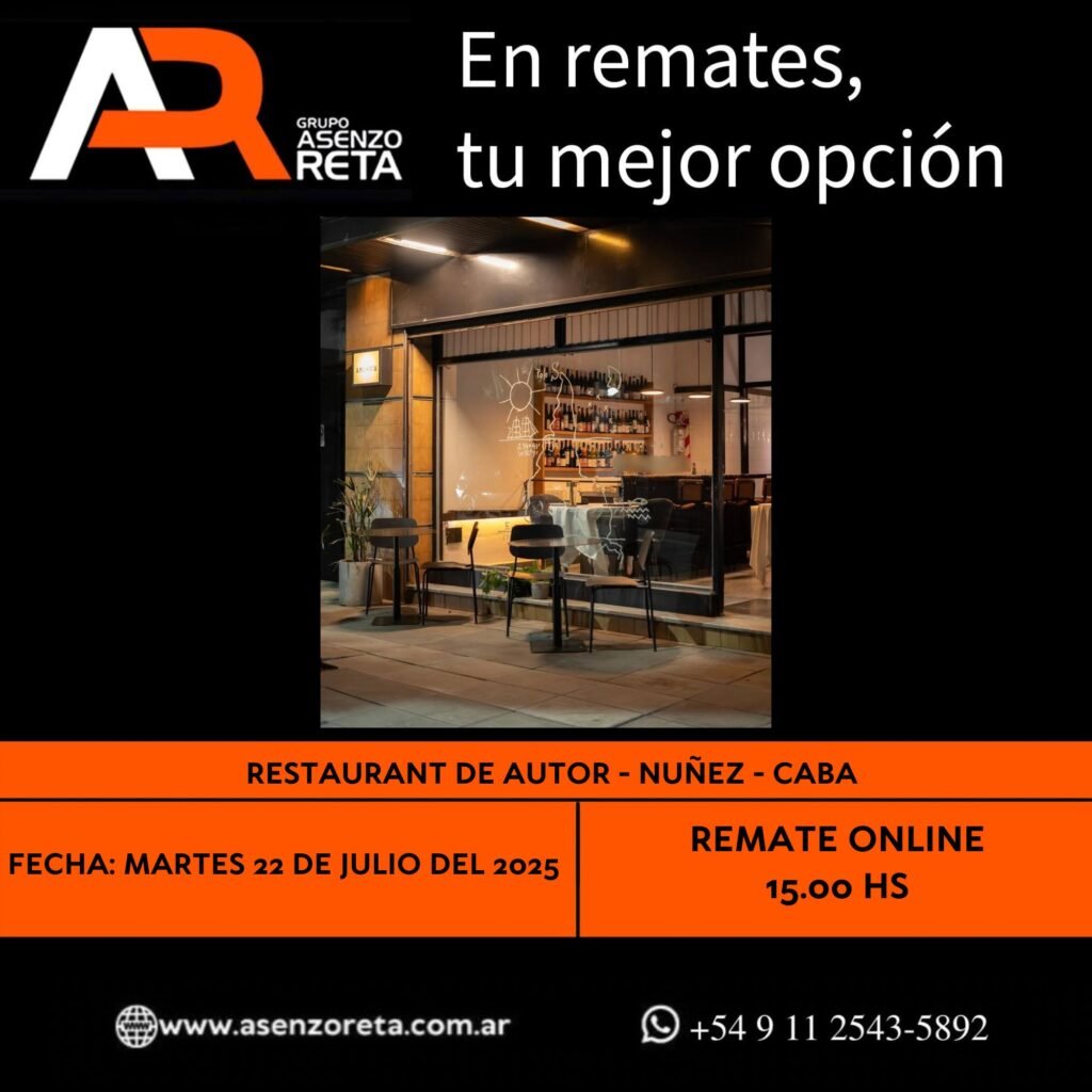 Remate de Importante Restaurant de Autor - Nuñez - CABA - 22/7/25